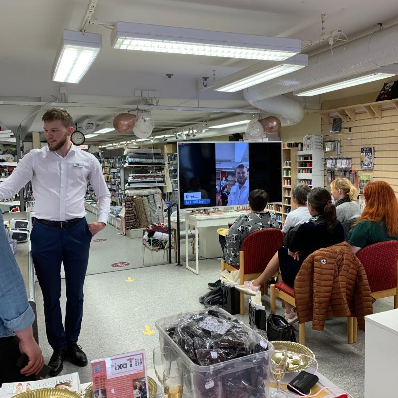 Onsdagen 20e april fick vi äran att bjuda in våra kunder till ett VIP-event/after work i samband med lanseringen av den nya Janome Continental M17. Maskinen demonstrerades på TV i butiken med en direktsändning av Janomes skandinaviska huvudkontor i Norge, Drammen. Vi delade ut goodiebags, bjöd på dricka och tilltugg. Det var nytt för oss att ha kvällsevenemang och vi hoppas att det kan bli återkommande i framtiden.