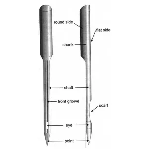 ✔ En platt baksida och rund framsida – säkerställer att nålen monteras rätt i symaskinen