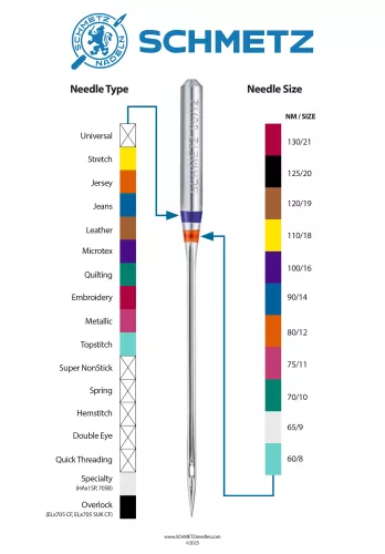 📌 Schmetz symaskinsnålar har tydliga färgmarkeringar så att du enkelt kan se vilken nål du använder – även när den är utanför förpackningen.