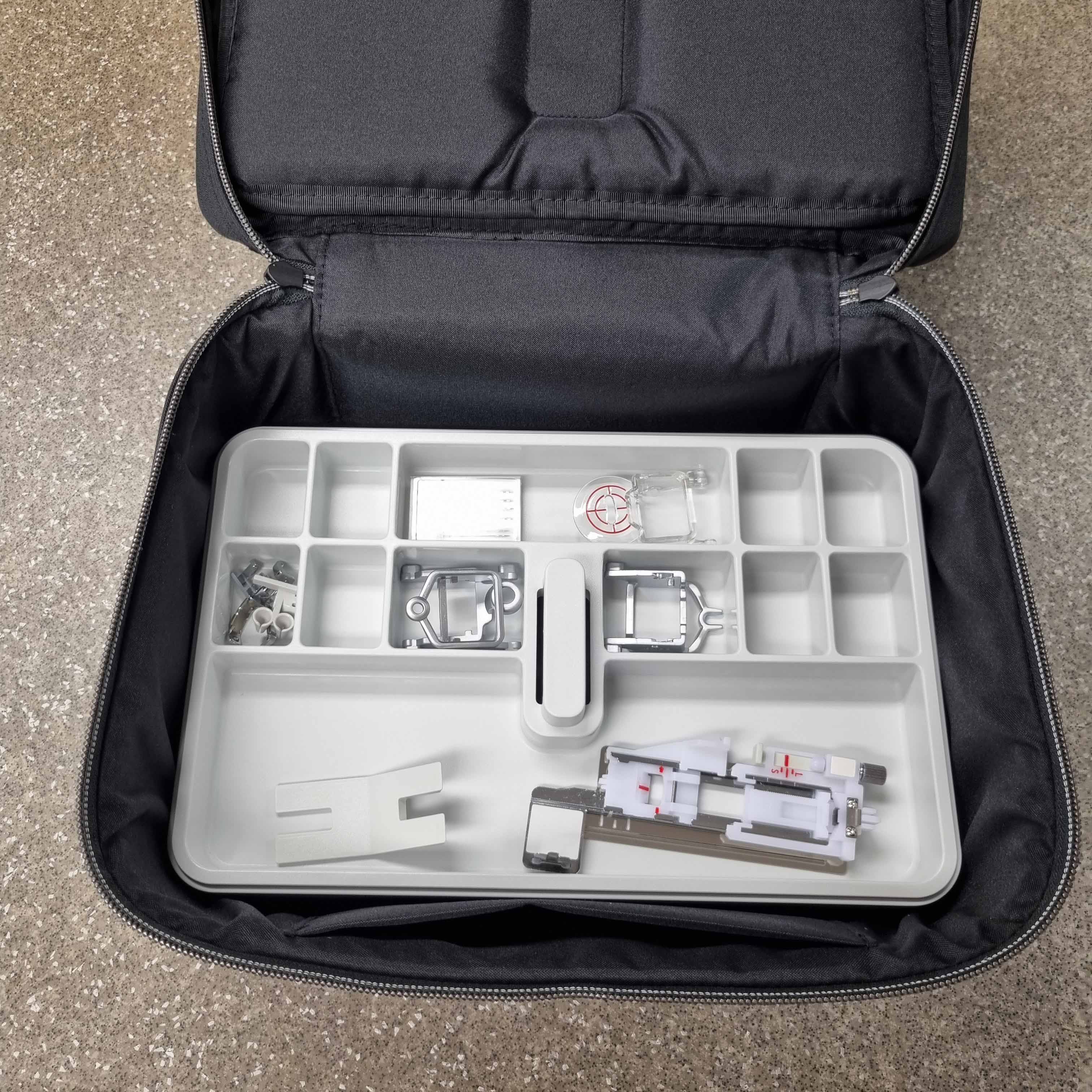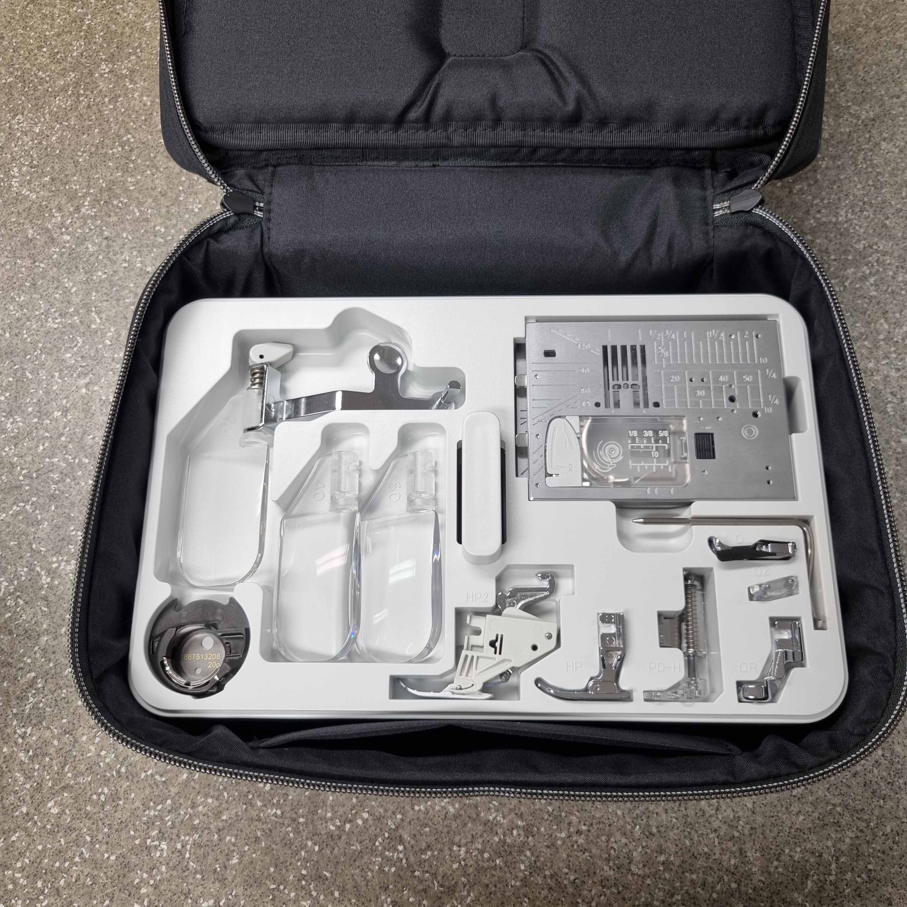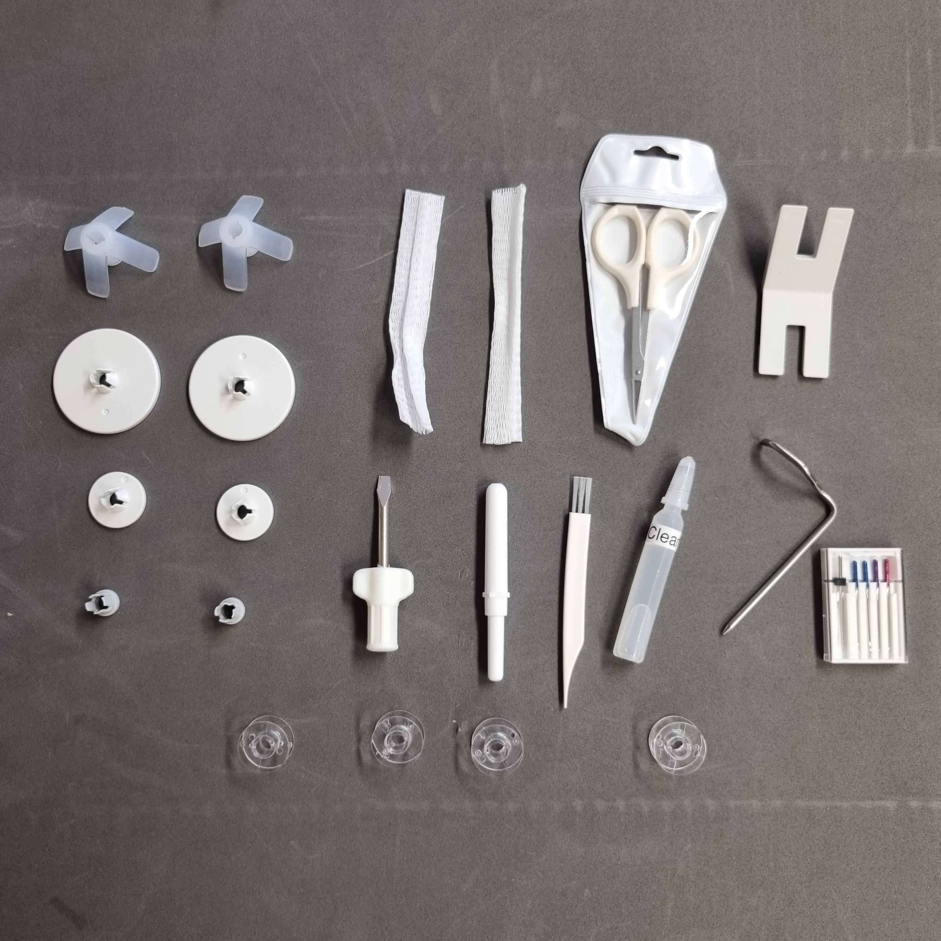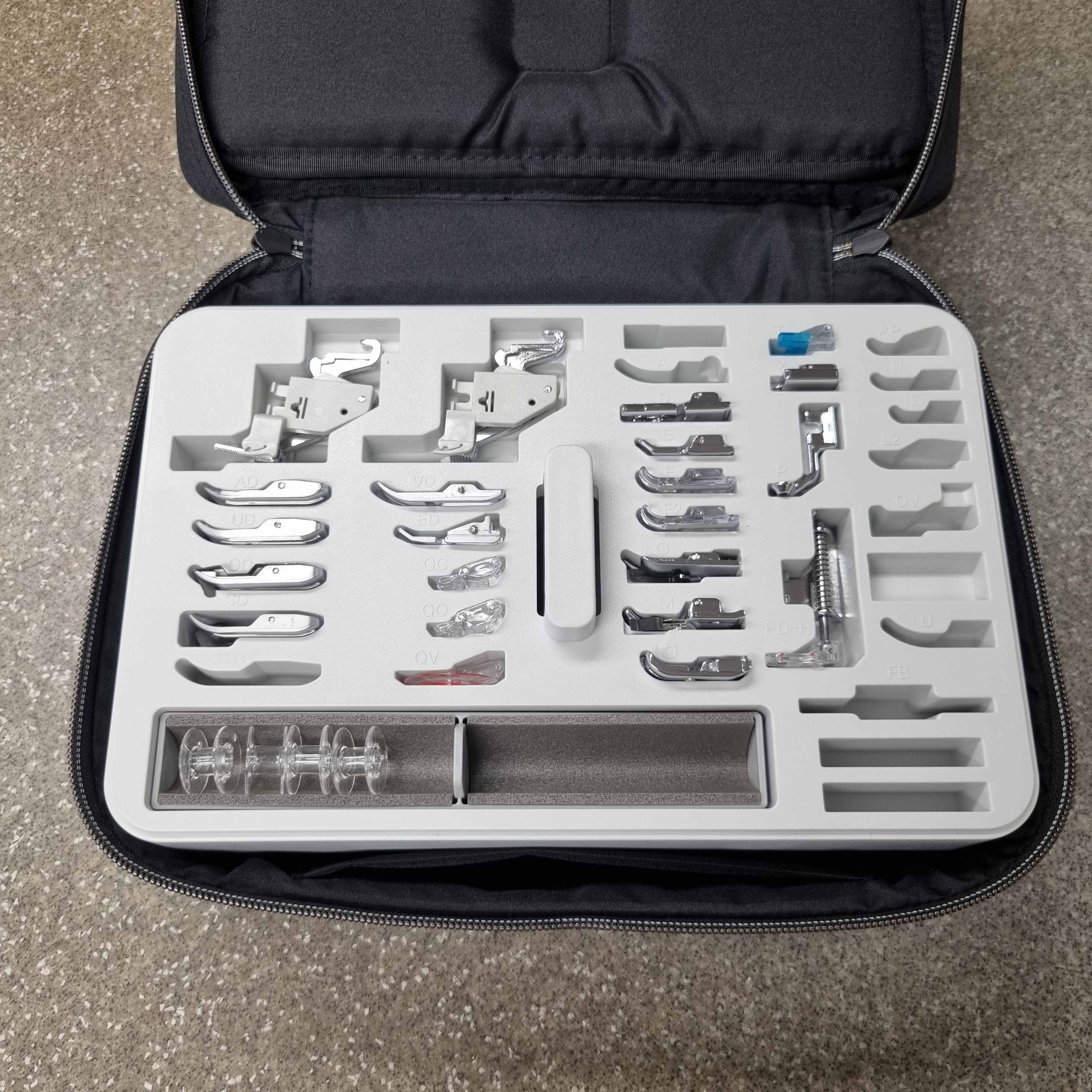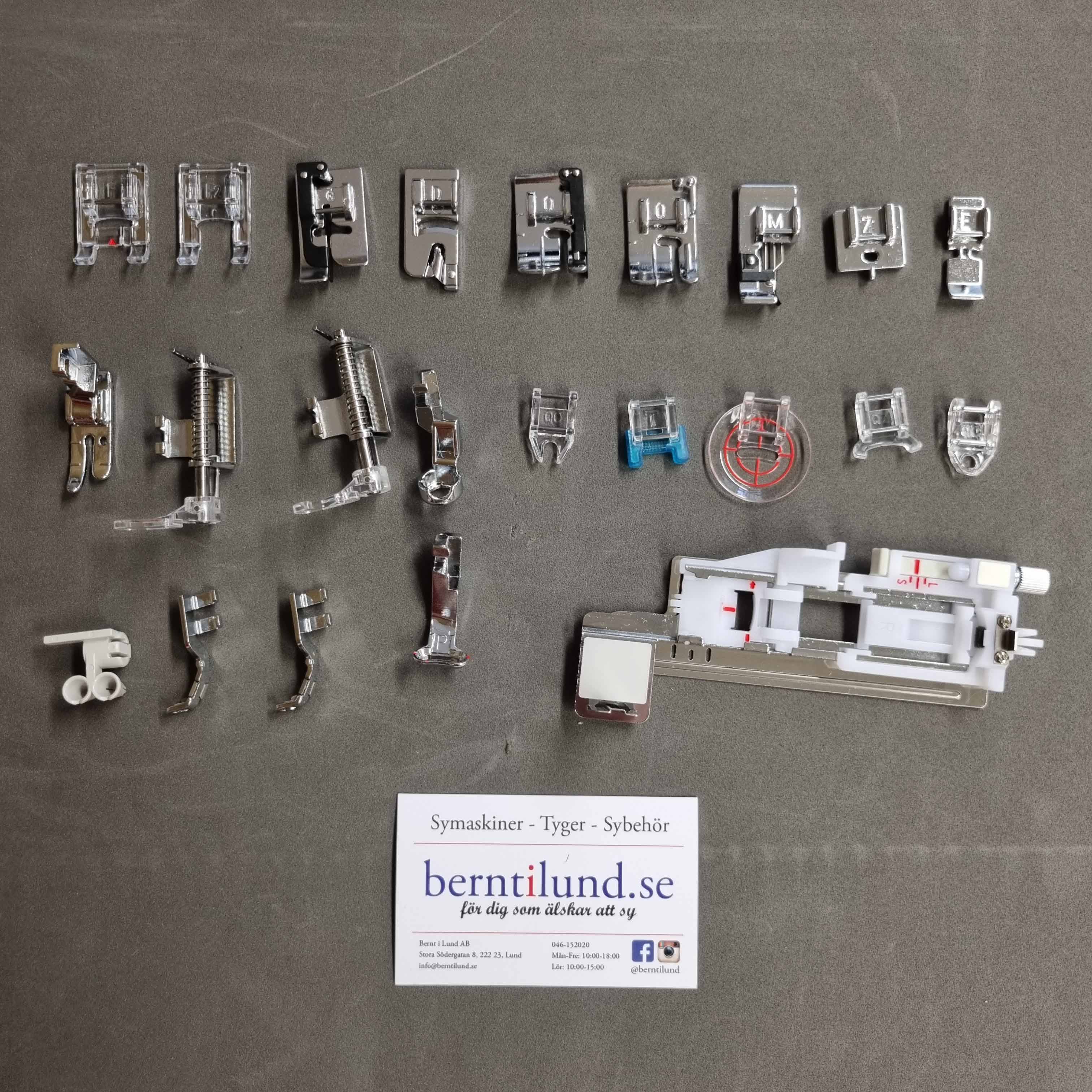 I samband med att vi plockade upp alla tillbehören till den nya Janome CM17 så dokumenterade vi vilka tillbehör som ingår. Så mycket som följer med!