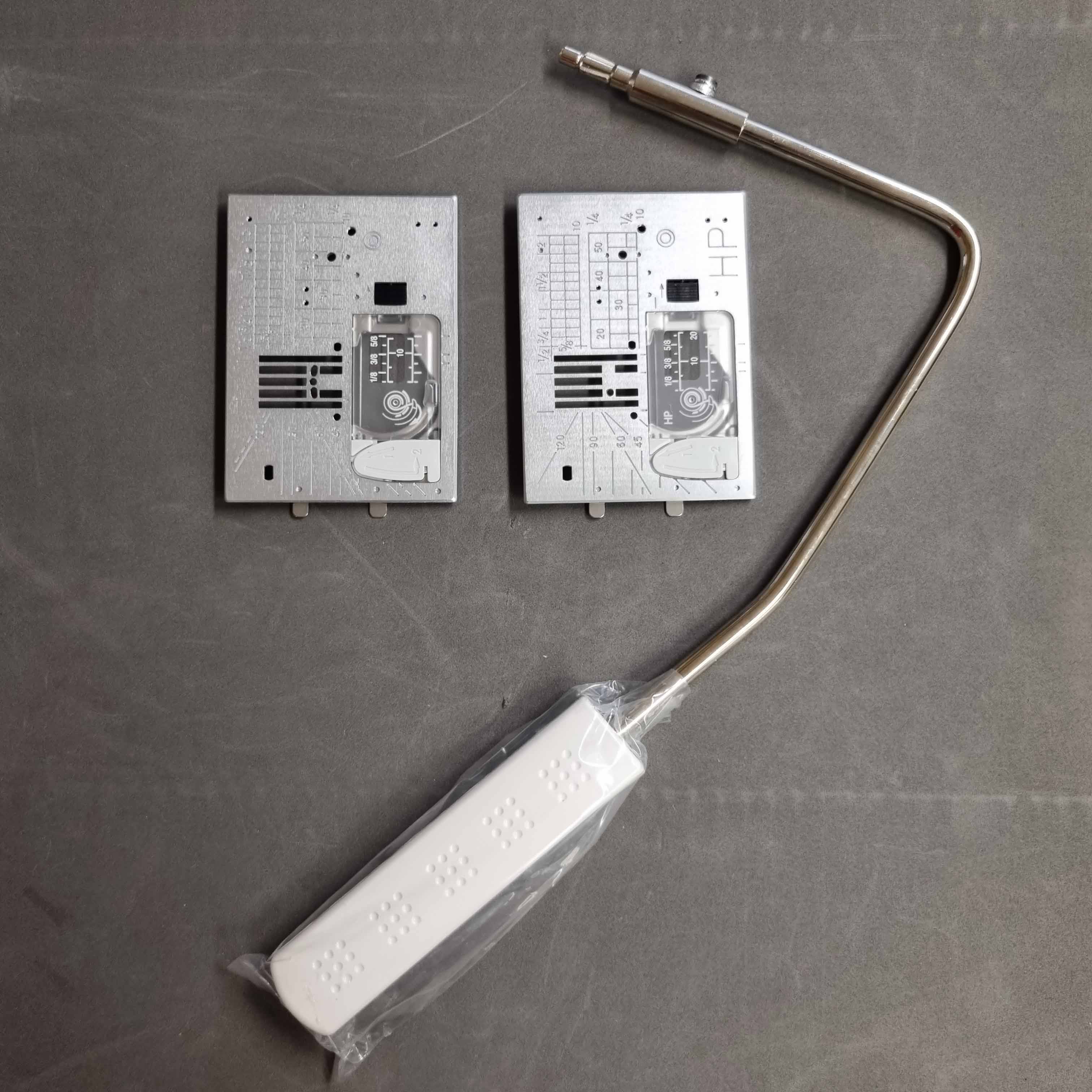 Här är tillbehören till den helt nya stygnregulatorn från Janome. Dessa ska bli roliga att testa! Stygnregulator innebär att maskinen vid frihandsquilting håller exakt lika långa stygn oavsett hur snabbt man flyttar tyget. På stygnregulatorn går det att använda olika fötter för exempelvis linjalquilting.