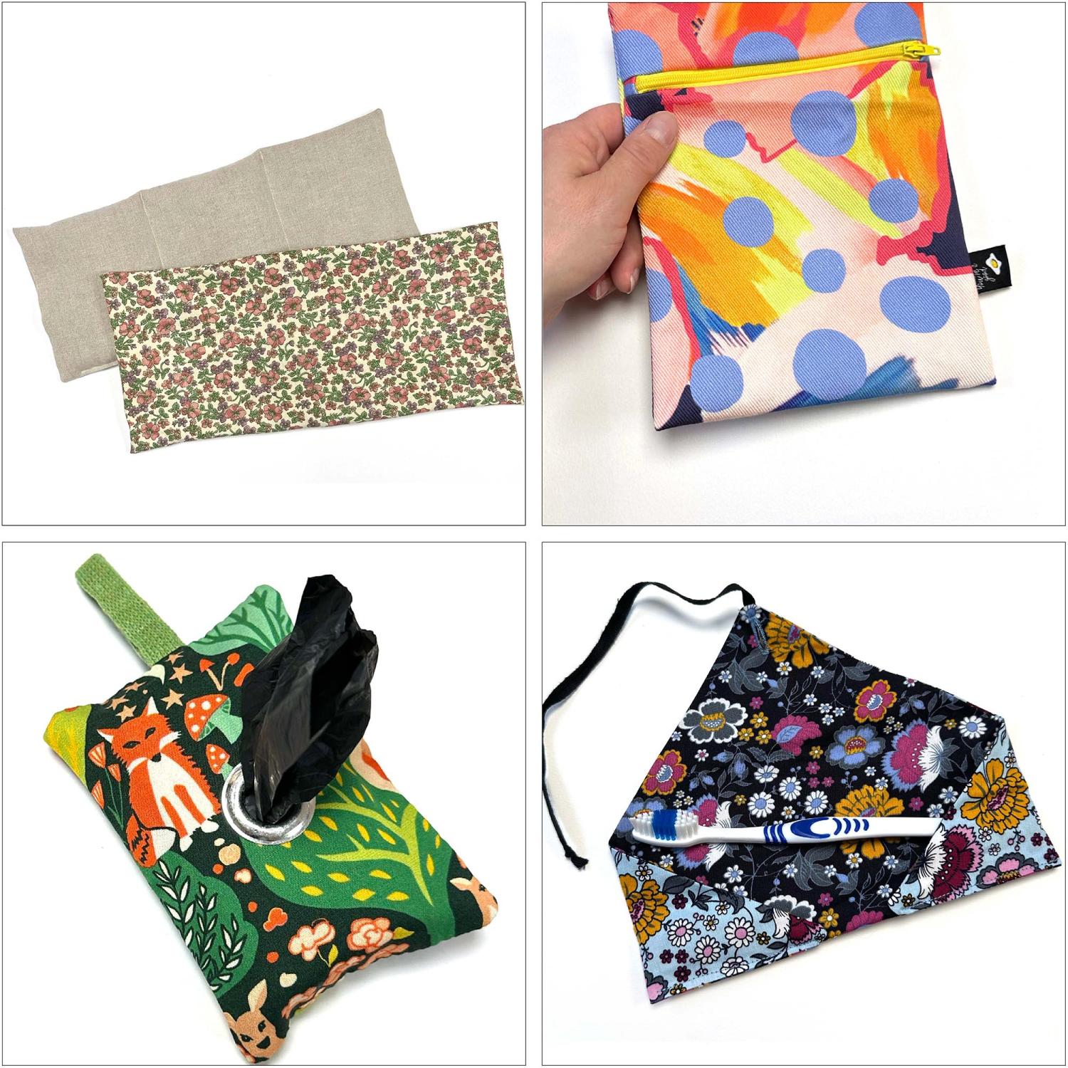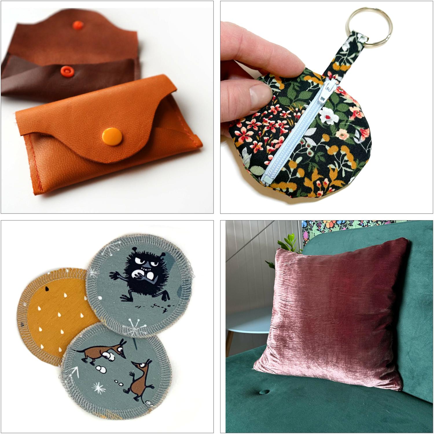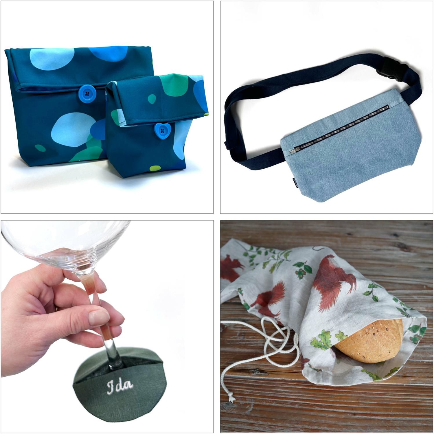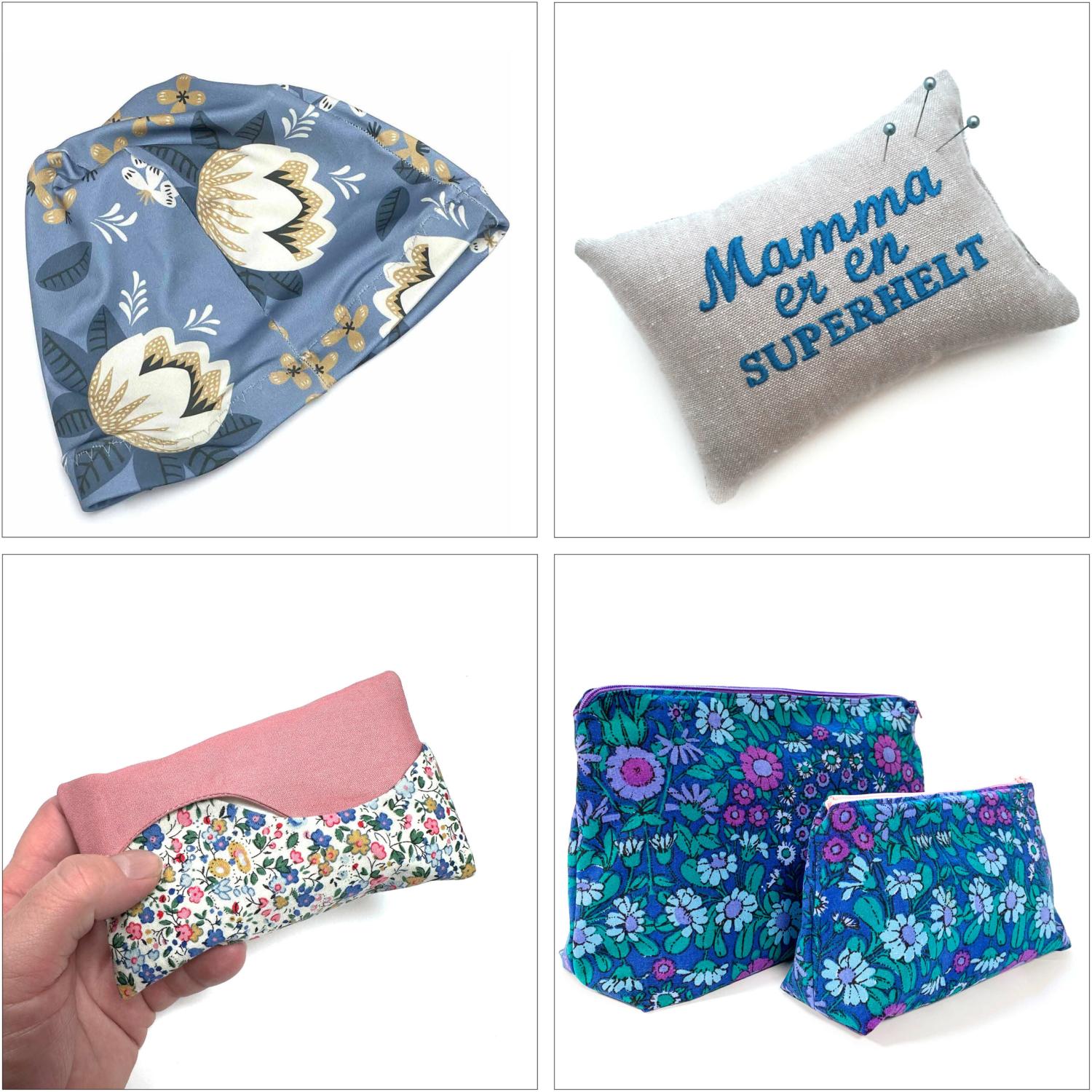 | Exempel på projekt | Toalettväska, shoppingväska, hårband, nyckelring, värmekudde, sminkpåsar, bröd- och matpåsar |