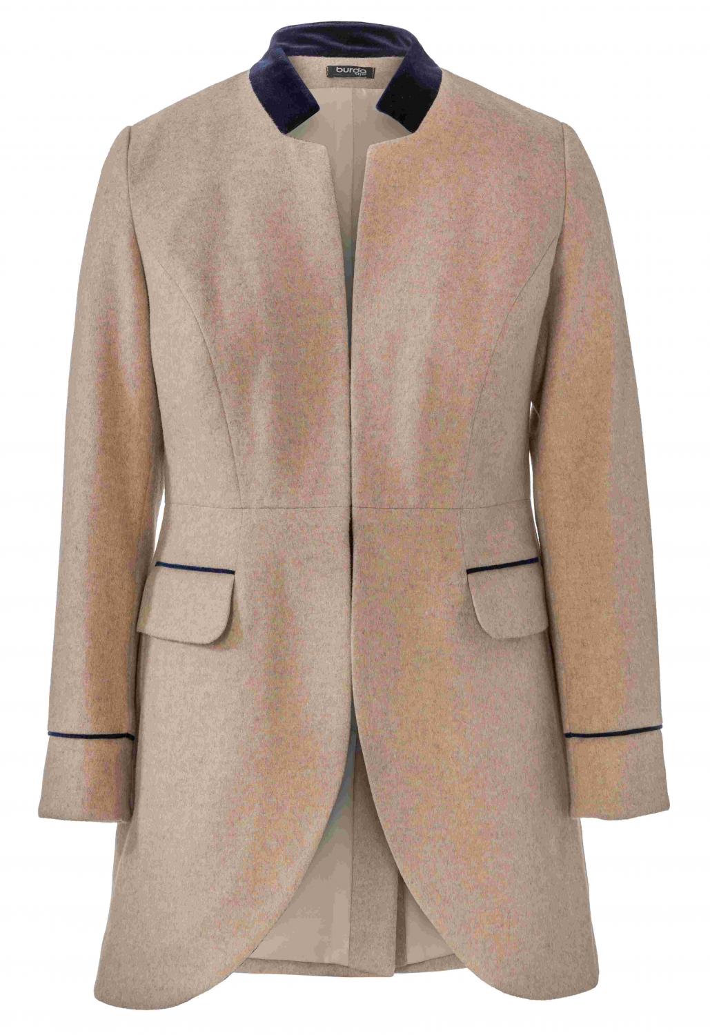En elegant jacka med ståkrage för speciella tillfällen kommer att sätta dina sykunskaper på prov. Prinsessömmar och en peplum garanterar en perfekt passform. Peplum på modell A är särskilt smart. Den rundade fållen, passpoalerna och sprundet bak på modellen påminner oss om den klassiska engelska redingoten.
