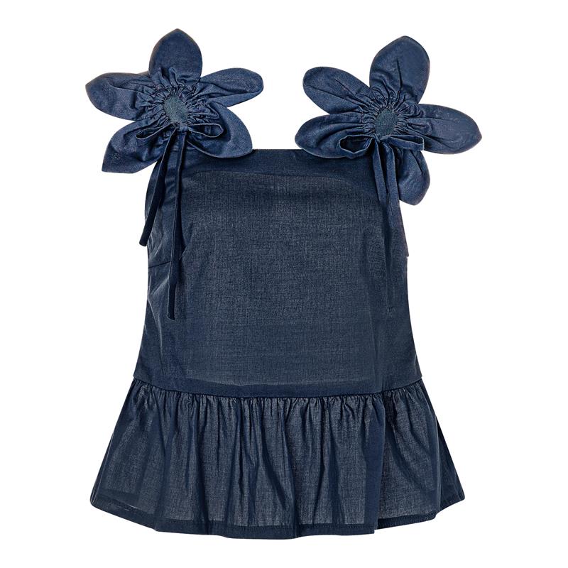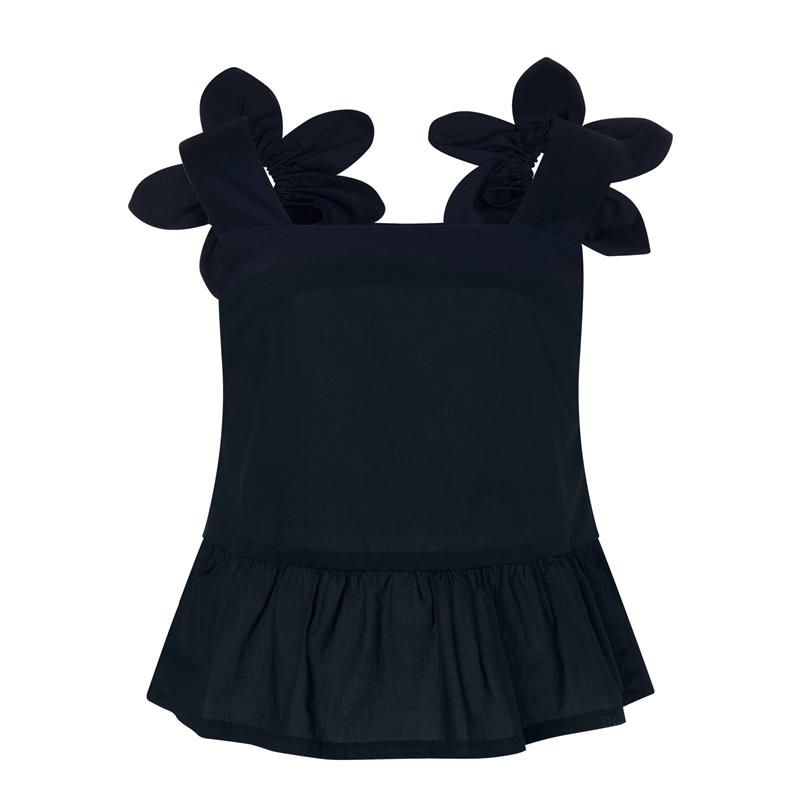 Modell A har blomformade knutdetaljer på axelbanden och en mjuk peplumkant i nederkanten. Modell B är en enklare linnetopp med smala axelband och rak nederkant. Båda passar lika bra till en kjol som till ett par vida byxor.