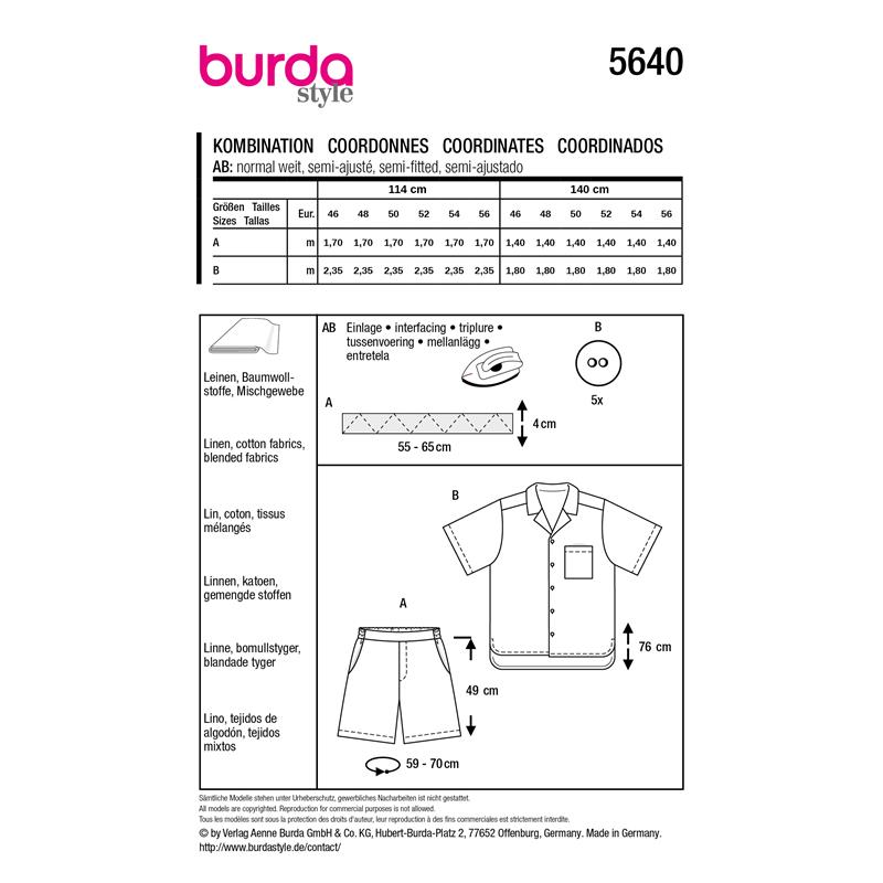 Burda Style 5640 – Shorts och skjorta herr (46-56)