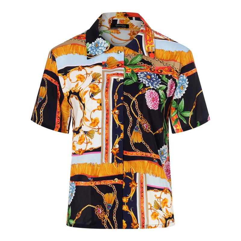 Burda Easy 5646 innehåller tre skjortblusmodeller i storlek 34 till 44. Alla tre har krage och knappslå fram och passar bomull, viskos och siden.