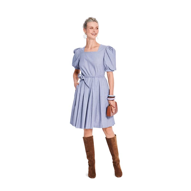 <ul><li>Två klänningsmodeller, storlek 36-48</li><li>Puffärmar med rosett och vid kjol med bälte</li><li>Svårighetsgrad: lätt</li></ul>