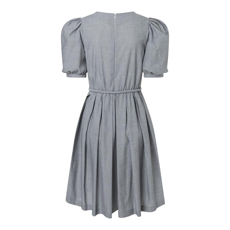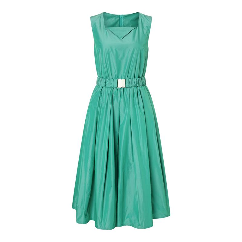 - Modell A med fyrkantig halsringning och bred midjekant