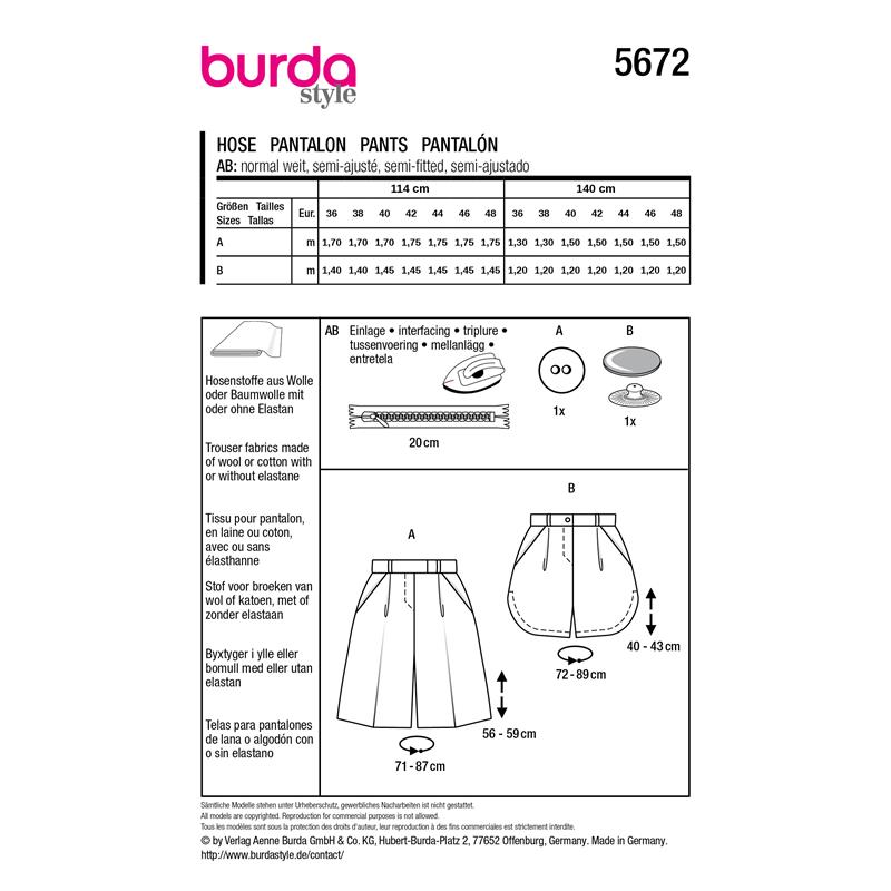 Burda Style 5672 – Bermudashorts dam (36-48)