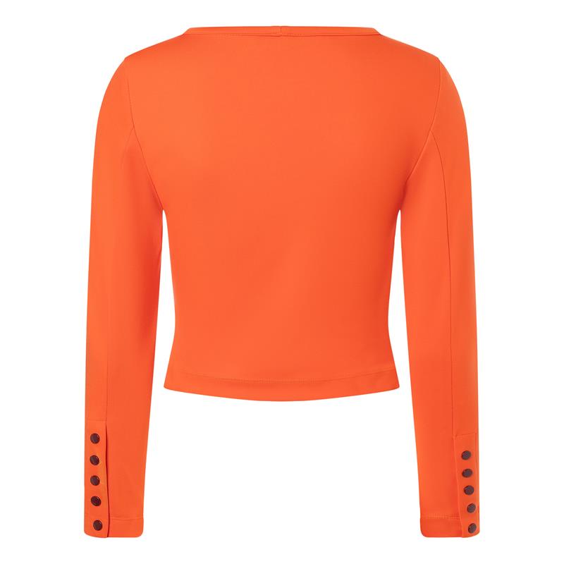 Modell A har en asymmetrisk slits längs ena axeln som ger ett diskret men distinkt uttryck. Ärmarna kan kortas för en mer avslappnad look. Modell B är en beskuren topp med tryckknappar längs ärmarna och valbar längd. Passar bra till högmidjade byxor eller kjolar.