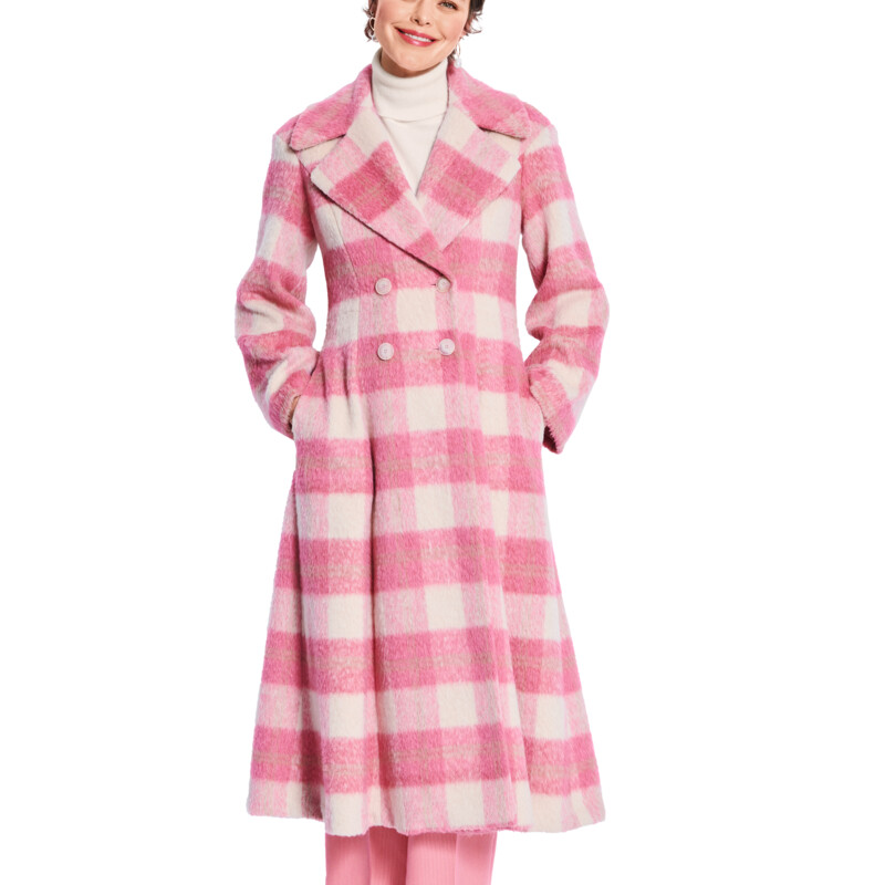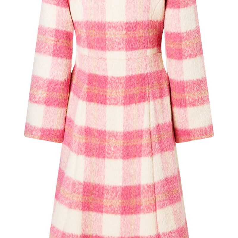 Den andra kappan liknar en trenchcoat men sticker ut med feminina detaljer som en XL-krage och voluminösa manschetter.