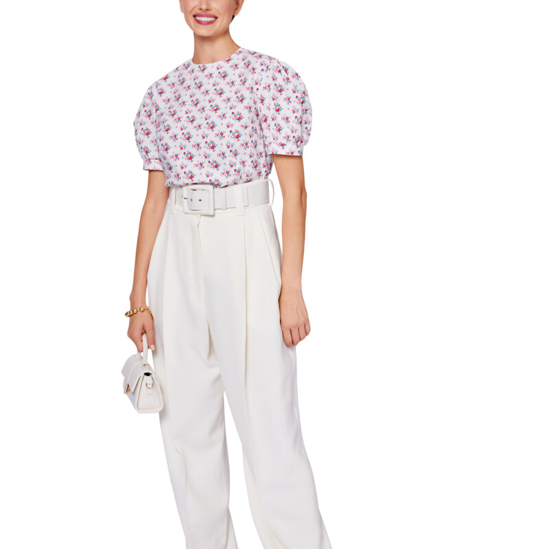 Den första blusen har en elegant passform med puffärmar och knäppning i ryggen, vilket ger en stilfull och modern look.