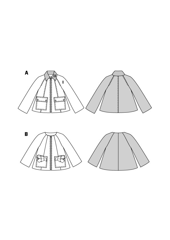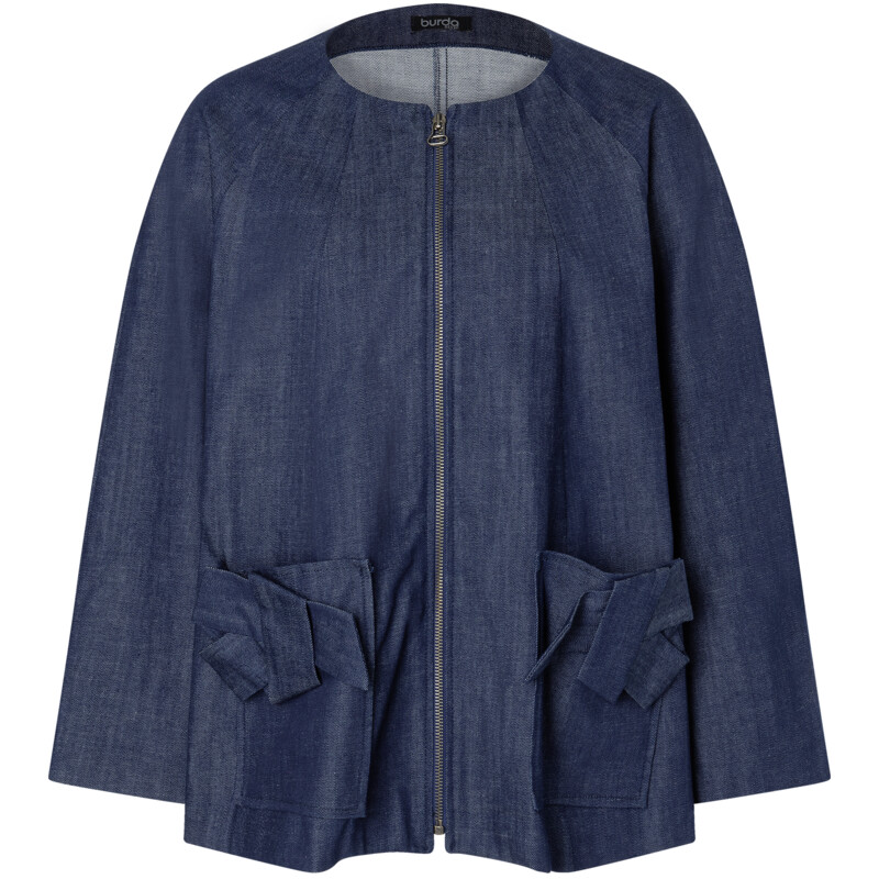 Detta mönster erbjuder två stiliga jackvarianter, båda enkla att sy! Den första modellen har en stilren passform med en manchesterkrage, XL-påfickor och trendiga toppstickade sömmar. Den är mångsidig och passar perfekt även till glamorösa klänningar. Den andra modellen utmärker sig med sin klockformade skärning och unika origami-inspirerade denimfickor. Perfekt för den som söker ett speciellt och iögonfallande plagg till garderoben!