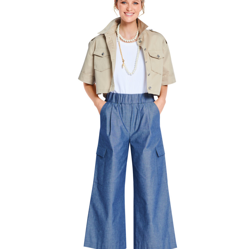 Tre stiliga och lättsydda byxmönster som ger din garderob ett fräscht lyft! Dessa byxor erbjuder en individuell look och komfort med sina olika stilar. De hållbara lyocellbyxorna har fyra bälteshällor, medan de mönstrade viskosbyxorna har en lös passform med resår i midjan och falsk dragkedjesöm. Marlene-jeansen är 7/8-långa och har cargofickor. Perfekt för den som vill ha både stil och bekvämlighet!