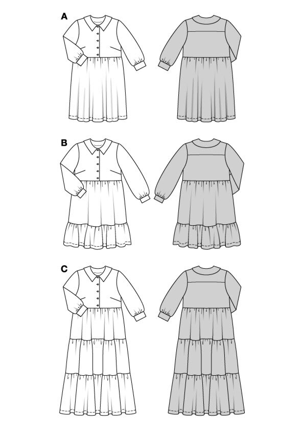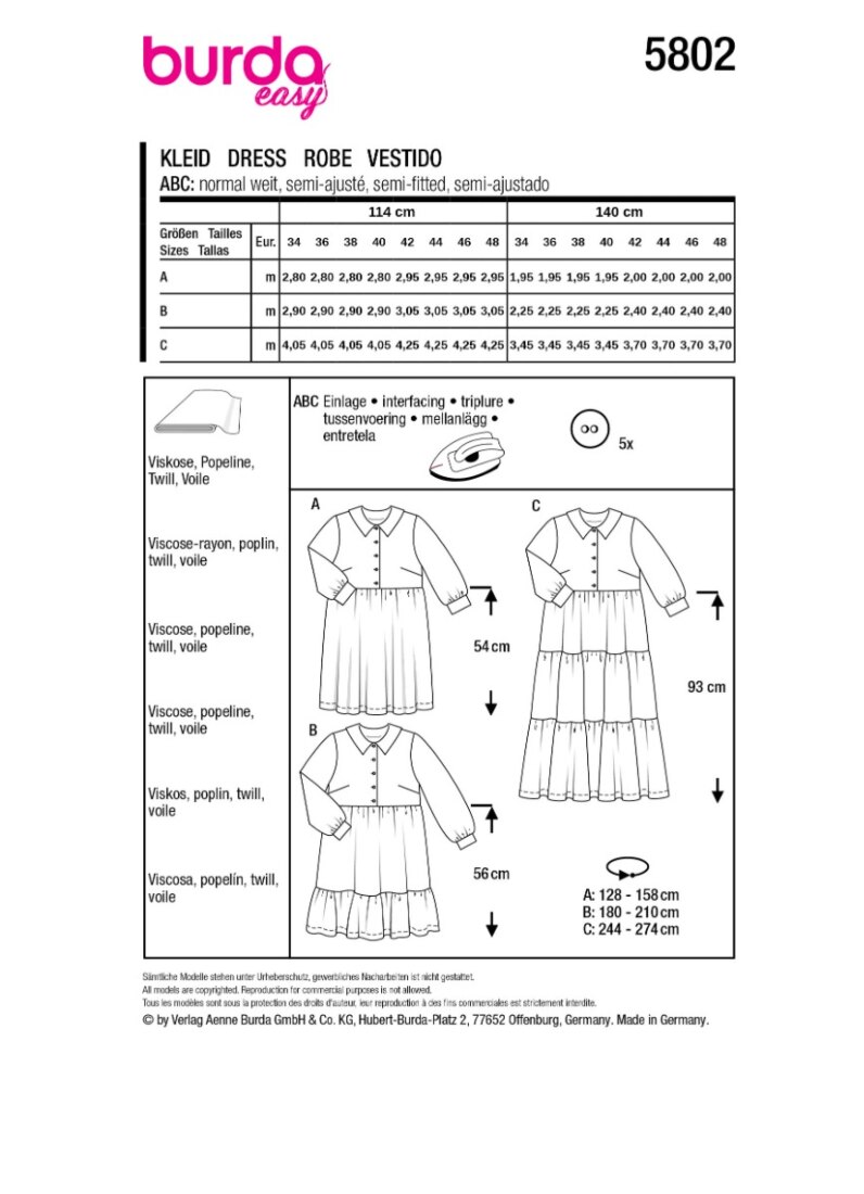 Denna blusmönsterkombination från Burda Easy är perfekt för nybörjare! Du kan sy en skjortblusklänning av viskos twill, till exempel, den passar perfekt med en denimjacka och loafers. Den sjuttiotalsinspirerade skjortklänningen med långa ärmar, krage och volang är lätt att sy. Maxiversionen med minskade kjolnivåer och 3/4-ärmar är en hit! Ett set för modemedvetna att sy själv - och allt på svårighetsgrad 1!