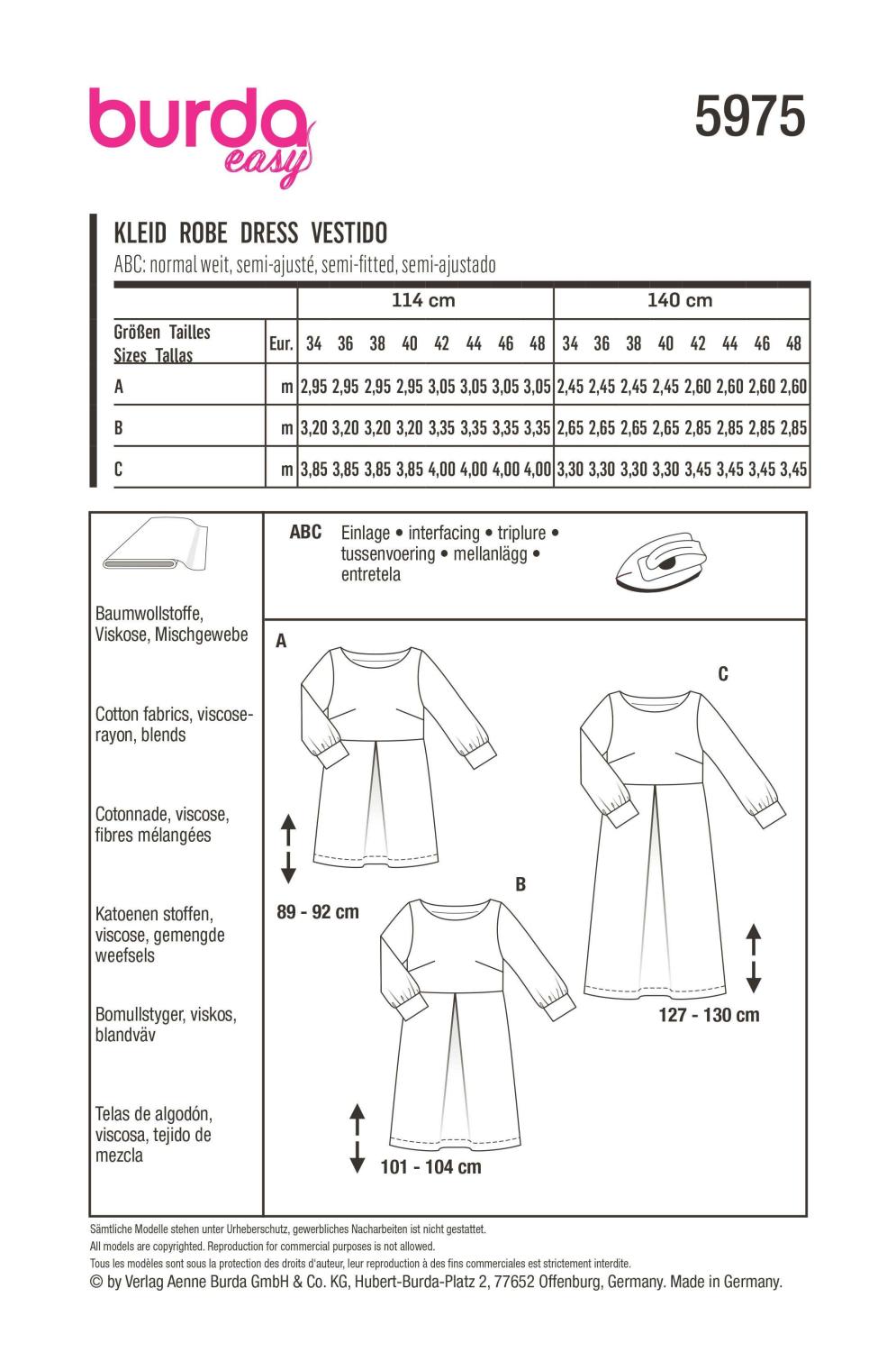 Burda Mönster 5975 - Klänning med U-ringning och ärmband