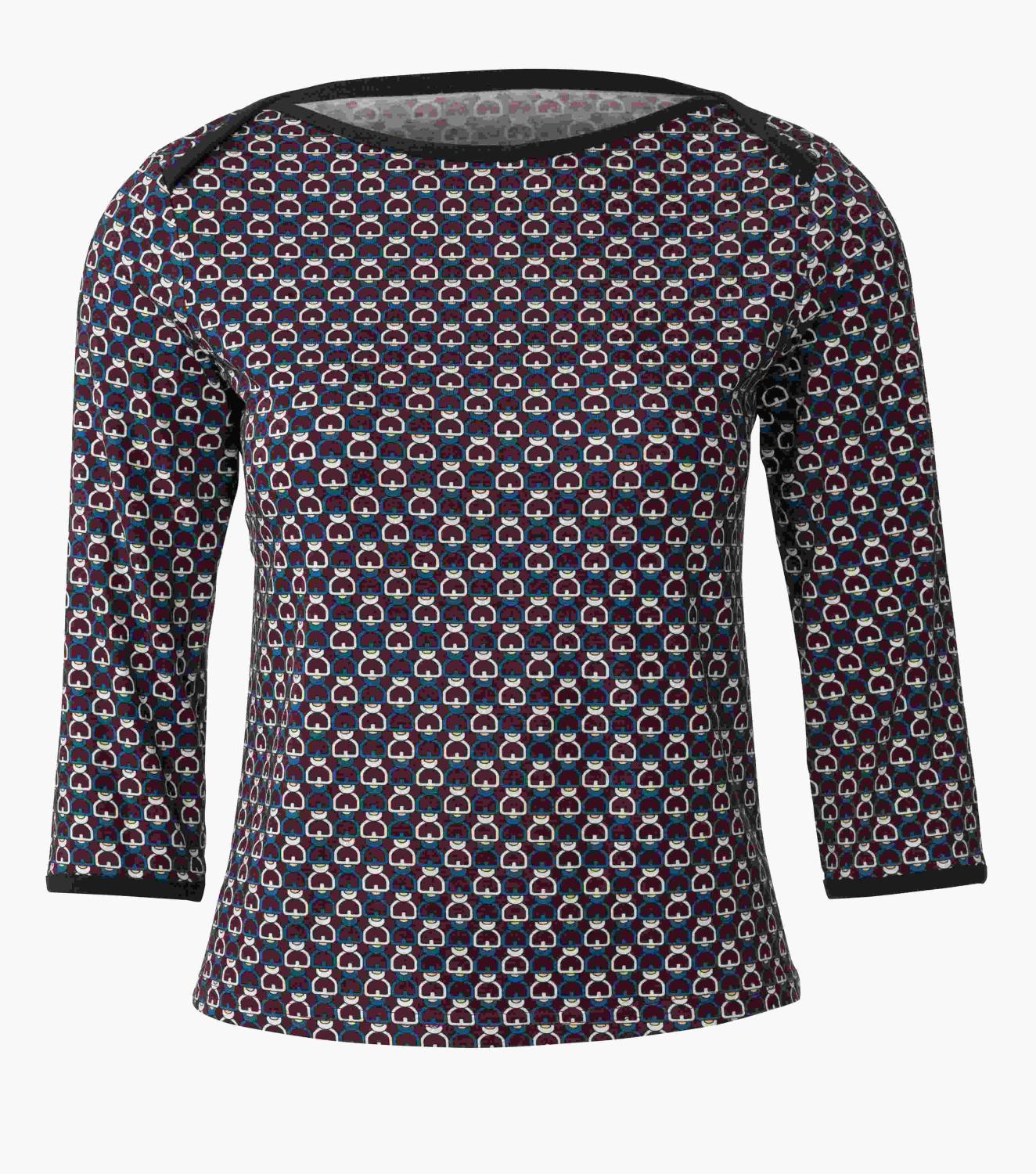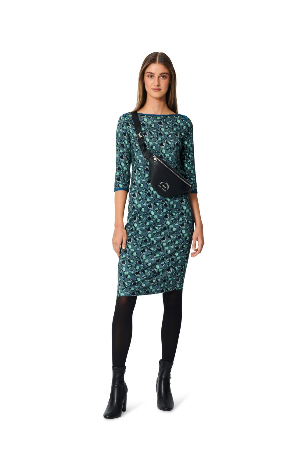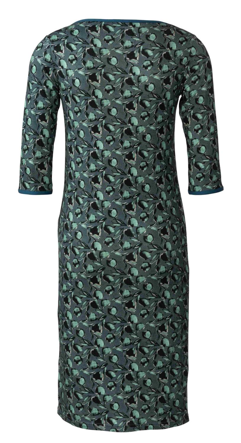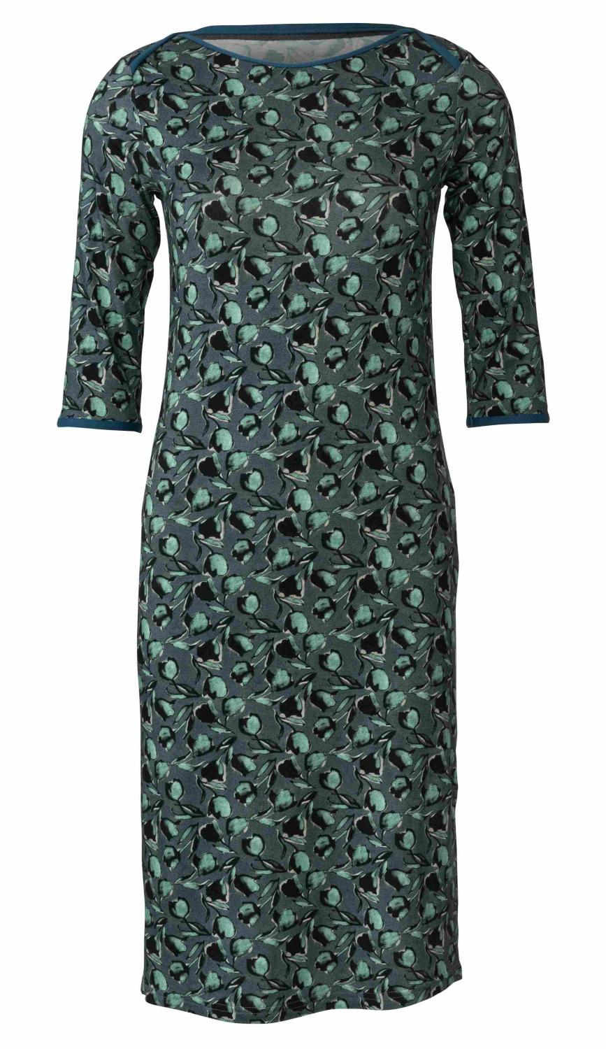 En smal klänning och en topp med 3/4-ärmar, båda med överlappande axlar och en grund urringning. Kanterna är dekorerade med stretchband. Välj ton-i-ton eller en kontrasterande färg för denna iögonfallande detalj.