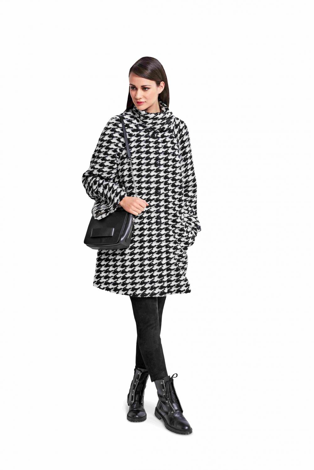 Ett mönster, två helt olika stilar: den längre raglanjackan i klassisk hundtandsväv är en perfekt matchning till byxor. Den korta jackan med stiligt avkortade ärmar och en liten krage kan kombineras med långa och smala kjolar för en trendig look.