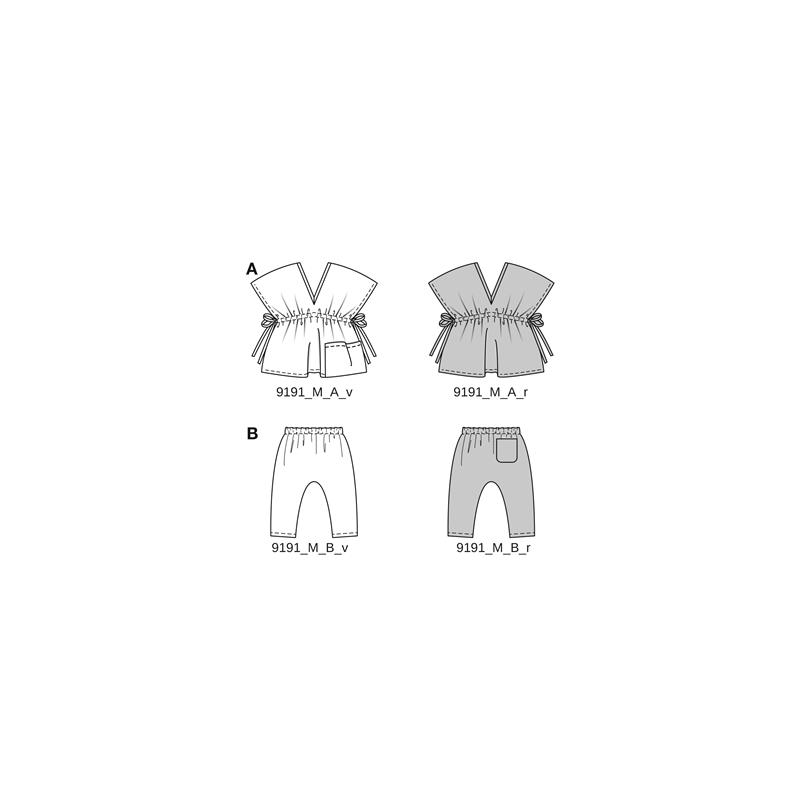 Burda 9191 – Omlottblus och byxor baby/småbarn (56–98)