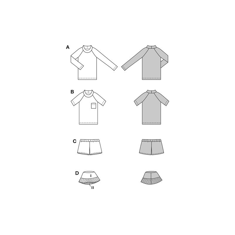 <ul><li>Rashguard, badshorts och solhatt</li><li>Storlek 104–146 (ca 4–11 år)</li><li>Svårighetsgrad: Lätt (2 prickar)</li></ul>