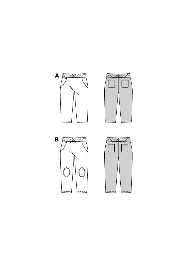 Dessa två mönster för barnens joggingbyxor är superenkla att sy! Det första mönstret har coola knälappar som inte bara ser avslappnade ut utan också ger mer stabilitet. Den andra variationen är särskilt bekväm, utan en gren söm, vilket gör att mönster kan löpa ostört. Den breda resåren i midjan garanterar en perfekt passform för lekstunder.