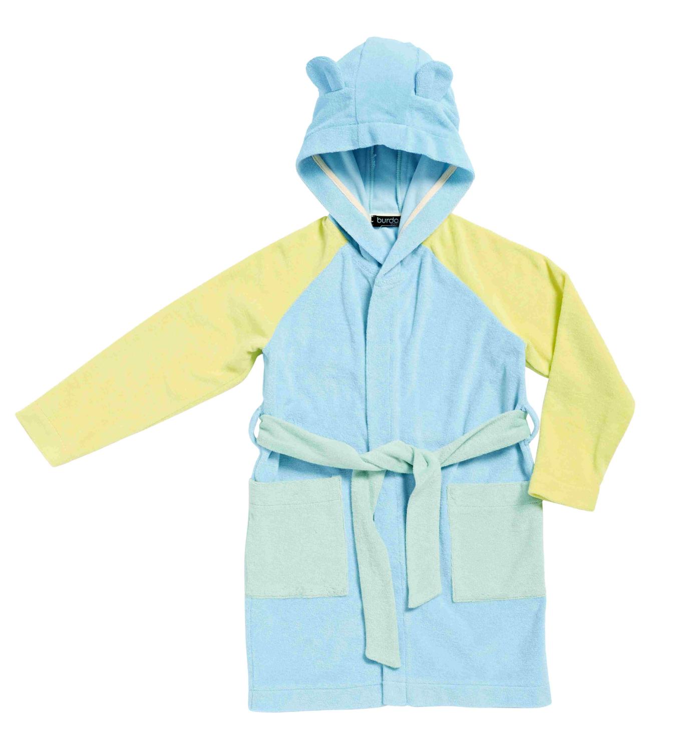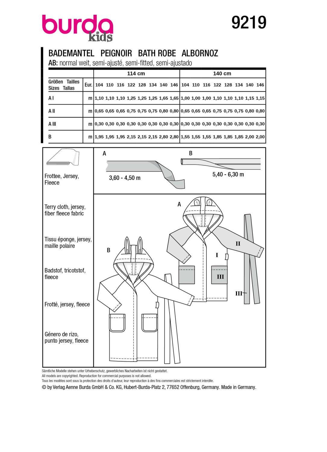 Mysig, praktisk och helt enkelt söt - vårt mönster för barnbadrock är ett måste för små vattendjur! Med en generös huva och smarta raglanärmar erbjuder den maximal rörelsefrihet. Dragskon säkerställer perfekt passform, medan det roliga snedslåbandet längs kanterna ger en speciell touch. Perfekt för frotté, jersey eller fleece - det gör torkningen till en enkel match!