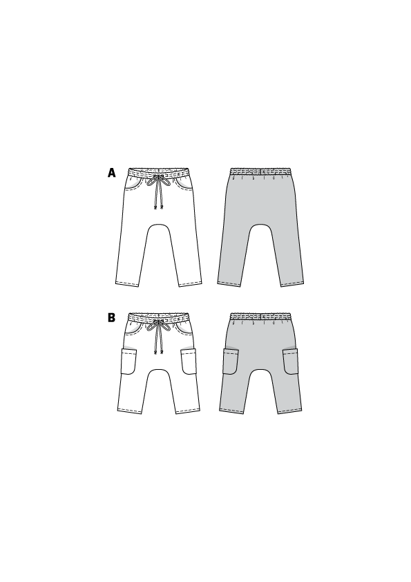 Byxor/byxor för pojkar och flickor i två längder - båda utan mittsöm. Den löst sittande grenen, elastiska dragsko i midjan och stretchigt tyg säkerställer gott om utrymme att röra sig för aktiva barn.