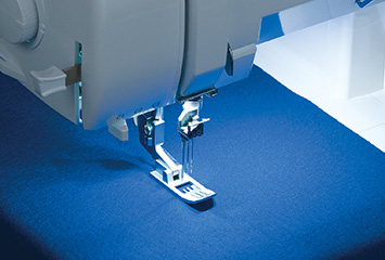 Differentialmatningen justeras mellan 0,6 och 2,0. Utan rätt inställning ger stretchtyger vågiga fållar och tunna tyger drar ihop sig. Med rätt värde (1,2 till 1,5 för de flesta stretchtyger) ligger fållen plant. Hastighetskontroll via fotpedal, upp till 1 500 stygn per minut.