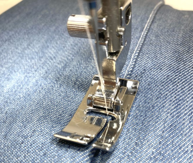 Pressarfoten gör det enklare att sy jämna stickningar där tyger är vikt i tjockare tyger.