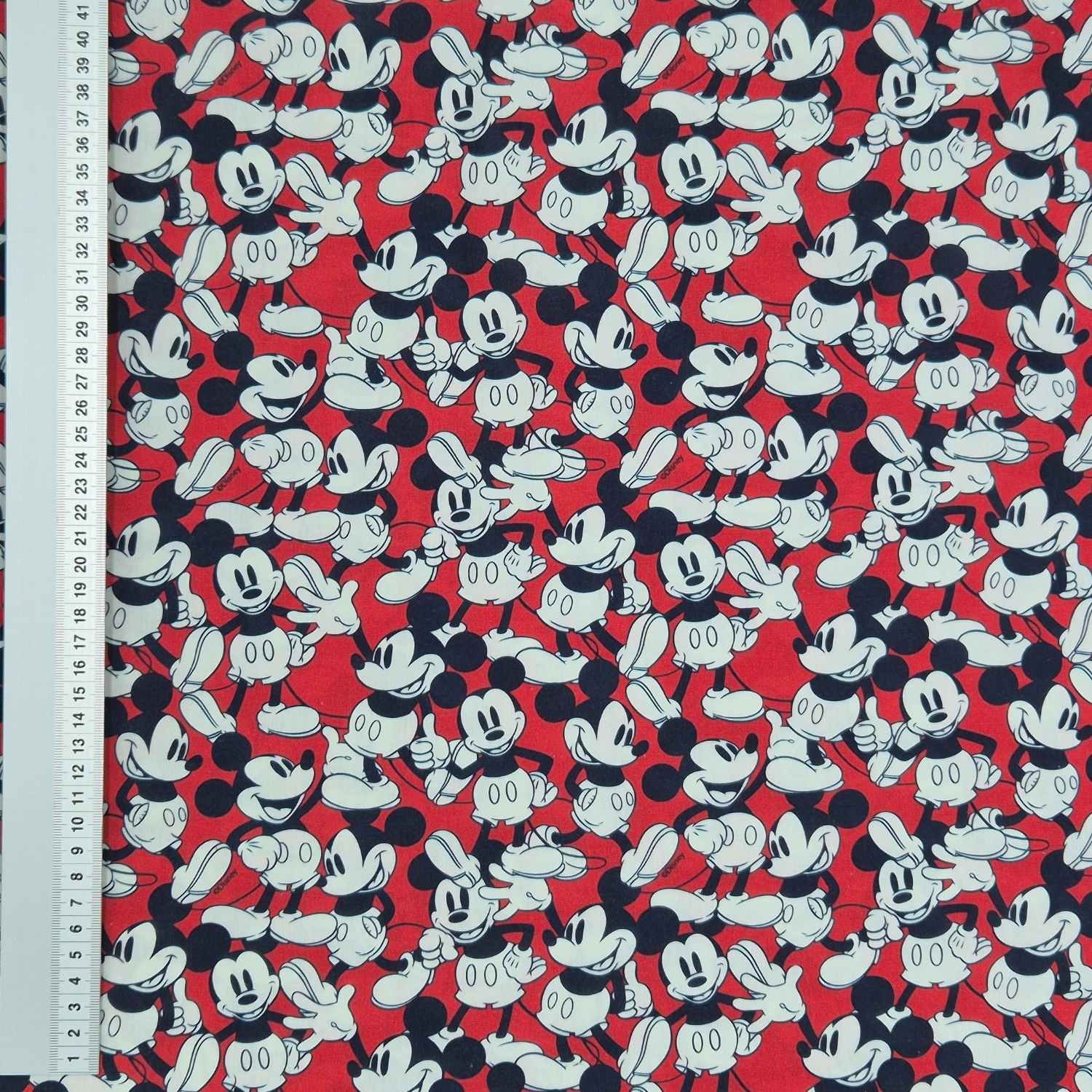Detta tyg med licens från Disney, prytt med den ikoniska Mickey Mouse, är tillverkat av högkvalitativ 100% bomull. Tygets design är lekfull med motiv av den älskade karaktären Musse pigg och det kommer säkert att tilltala fans i alla åldrar.