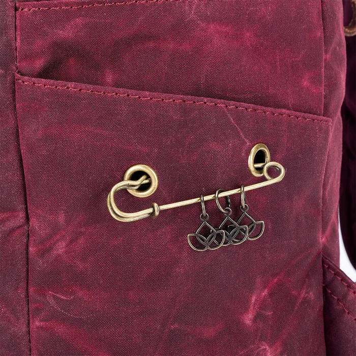 Insidan rymmer laptop eller surfplatta, garn, mönster och tillbehör – och har flera fickor, inklusive flaskhållare, mobilfack, penhållare och två tryckknappsfickor för elektronik. Den är dessutom utrustad med Della Q:s garnmatare och trådkapare – så att du kan använda ryggsäcken som garnskål när du är på språng.