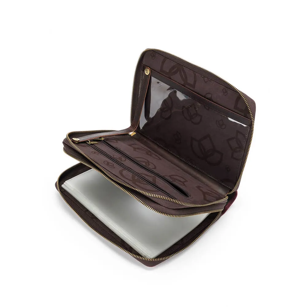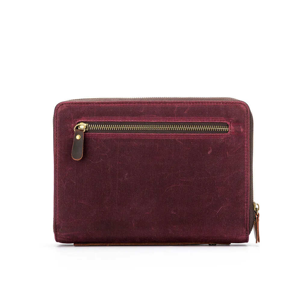 Della Q Maker’s Portfolio är den perfekta mappen för dig som vill hålla ordning på mönster, stickor, virknålar och tillbehör, snyggt och praktiskt. Den är tillverkad i tålig canvas med vaxad yta och har en elegant dragkedjestängning och handtag i läder.