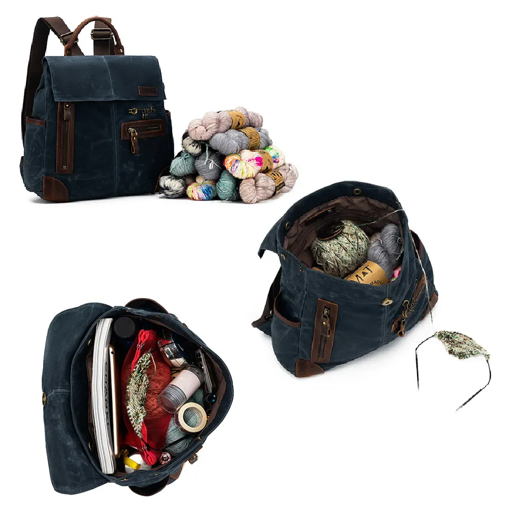 En klassisk ryggsäck i ny tappning. Perfekt för dig som vill ta med stickning, virkning eller andra kreativa projekt i vardagen. Della Q:s Maker’s Canvas Backpack är tillverkad i kraftig, vaxad canvas med detaljer i läder och kombinerar praktisk funktion med stilren design.