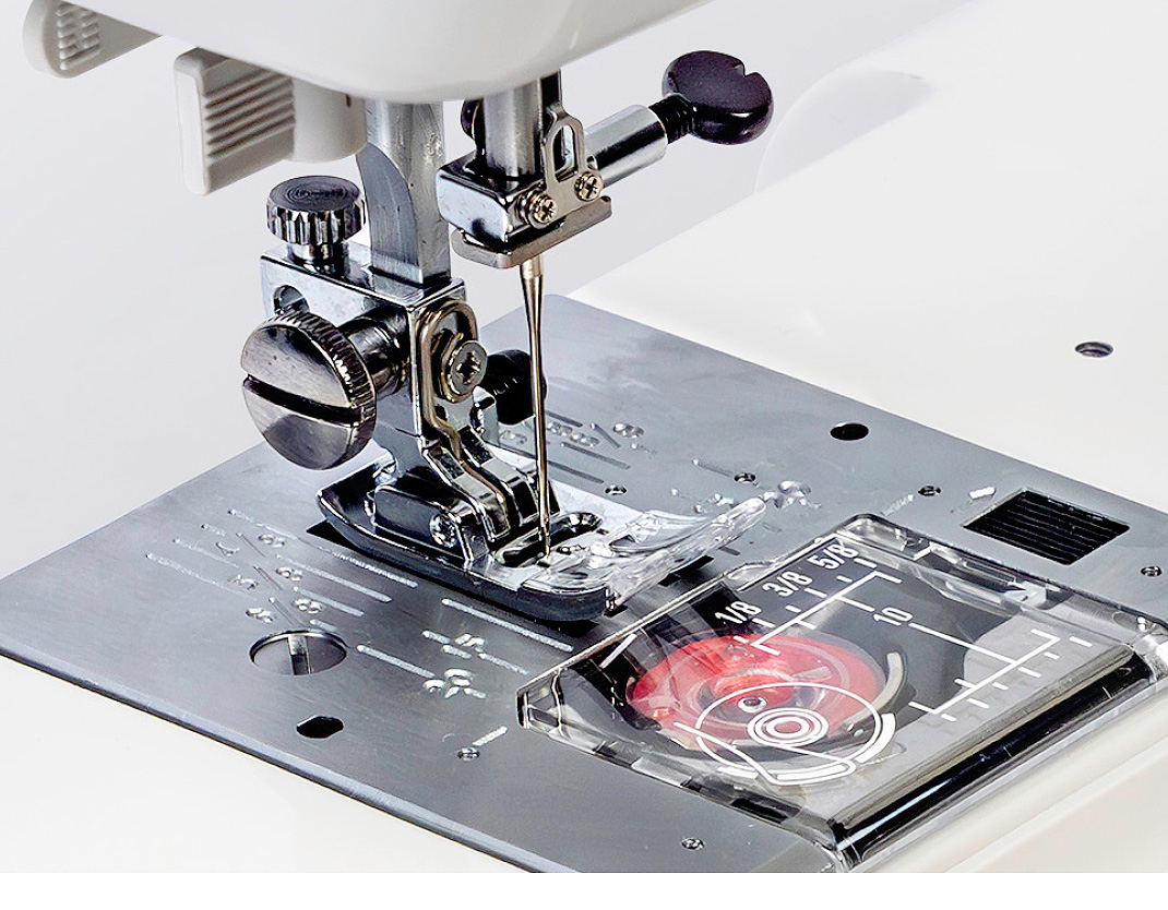- Extra högt pressarfotslyft underlättar vid sömnad av tjocka lager.