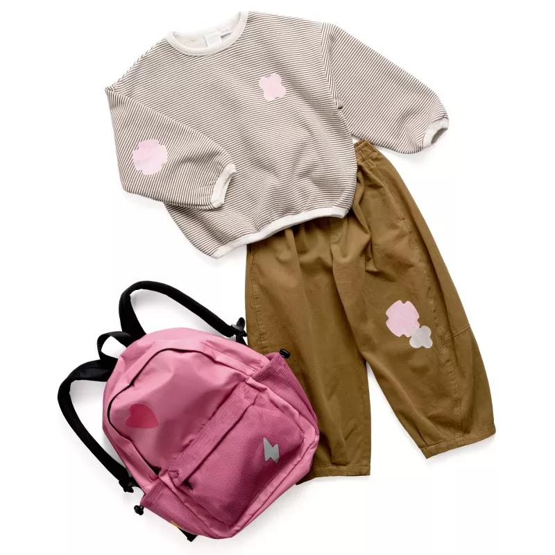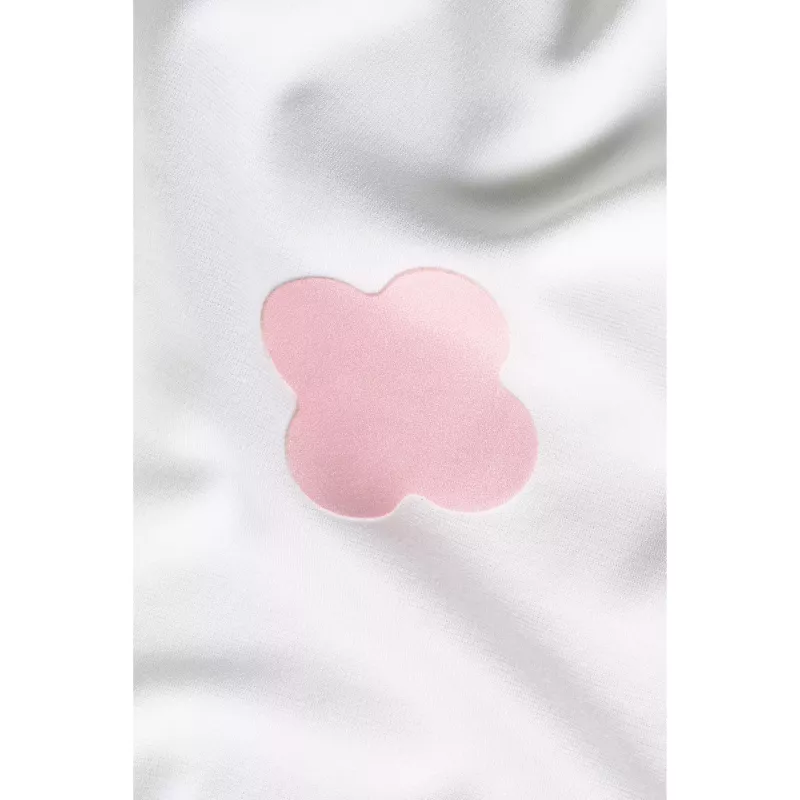 Dra loss en liten del av skyddspappret, placera lappen på tyget och fortsätt dra bort resten medan du trycker fast ordentligt. Gnugga igenom hela ytan. Full vidhäftning uppnås efter 72 timmar. Tvättbar i 40°C och strykbar upp till 160°C (2 prickar).