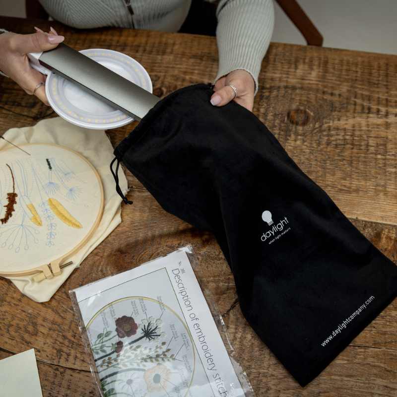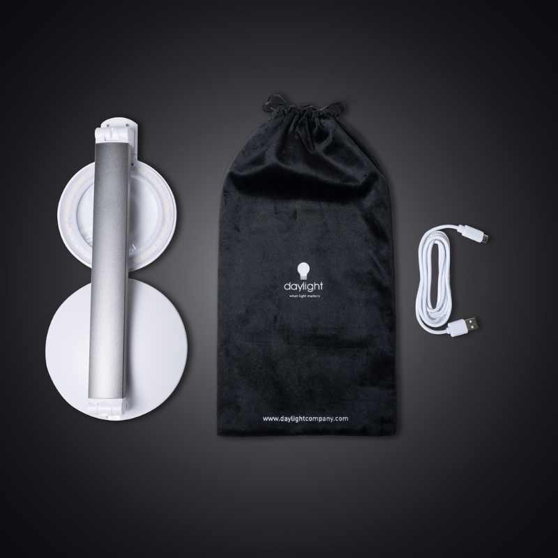 Med kraftfulla 95+ CRI LED-dioder ser du färger i sitt sanna ljus – en stor fördel vid exempelvis textilarbete eller målning där färgåtergivning är viktig. Lampan ger upp till 8 timmars trådlös användning och kan enkelt fällas ihop och tas med i den medföljande förvaringspåsen.