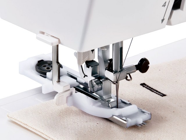 - Pressarfotslyft med extra höjd: Perfekt för att hantera tjockare tyger.