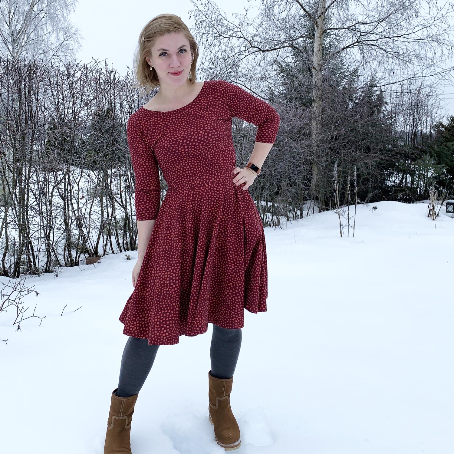 Jerseykjole med sving från Ida Victoria är ett av hennes mest populära symönster. En klänning som är lika bekväm som den är elegant.