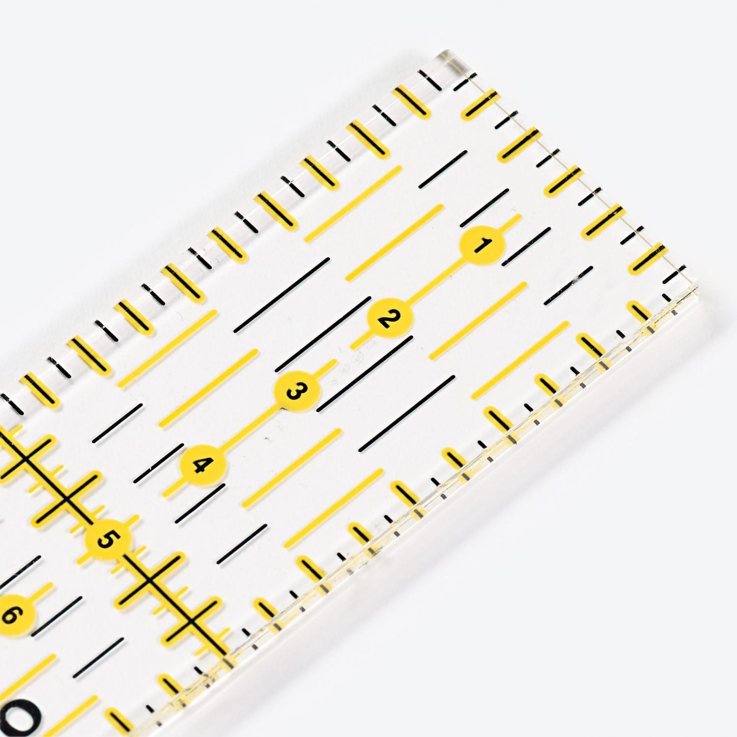Denna linjal är ett praktiskt verktyg för alla som arbetar med sömnad och quiltning. Med sina mått på 3 x 15 cm är den lätt att hantera och passar perfekt för precisionsarbete.