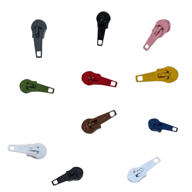 Den är tillverkad i metall, enkel att trä på blixtlåset och fungerar utmärkt till kläder, väskor, kuddfodral och andra textila projekt där du vill ha en stabil och manuell låsfunktion.