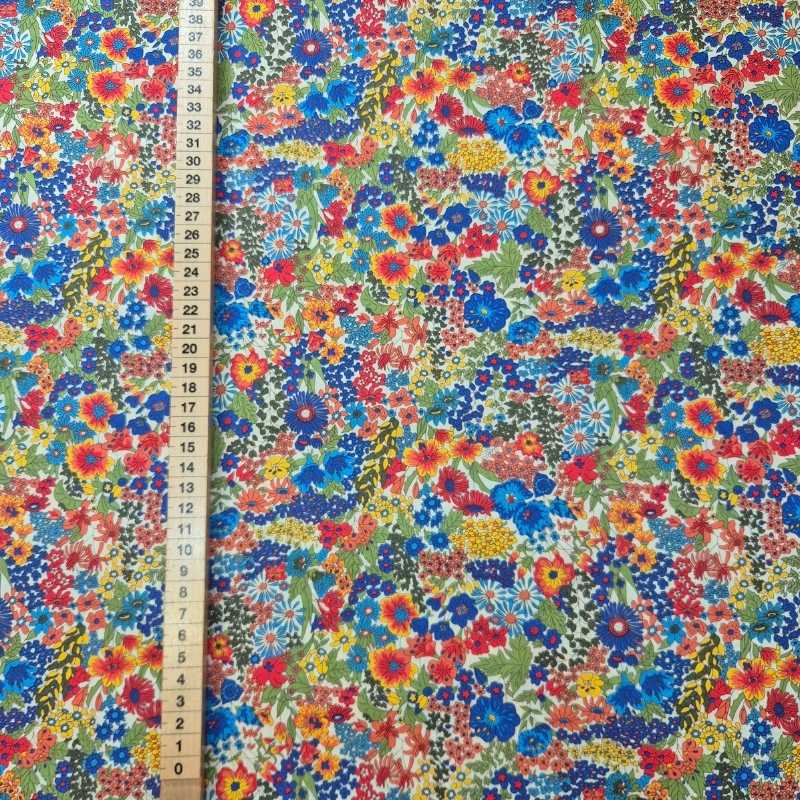 <ul><li>Liberty Tana Lawn, 100% bomull</li><li>Tätt ängsblommönster i stark färgpalett</li><li>136 cm bred, 104 g/m²</li></ul>