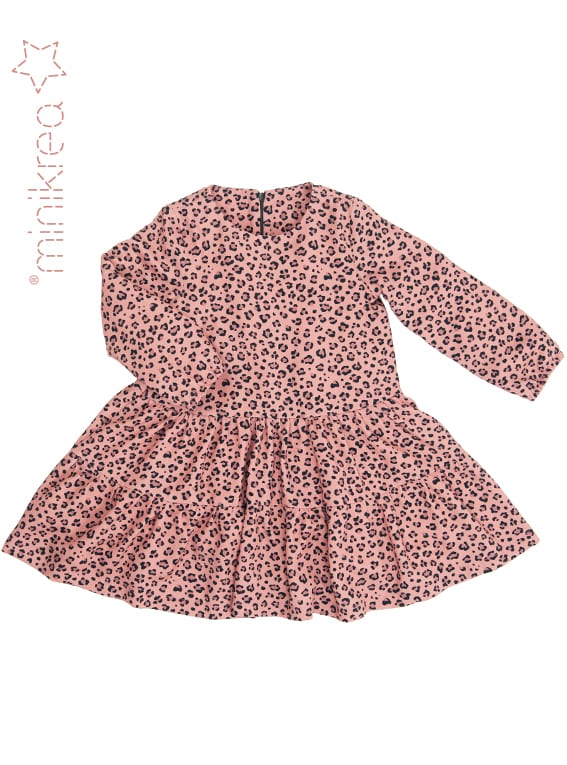 En söt och tidlös klänning för barn med långa ärmar, rund halsringning och en dekorativ volangfåll nedtill. Modellen har en bekväm, lös passform som ger fin rörelsefrihet och stängs med dold dragkedja i ryggen. En klassisk klänning som passar lika bra till vardag som till fest.