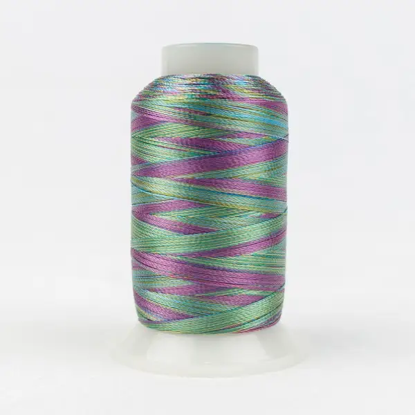 WonderFil Mirage är en 30 wt rayontråd med vacker glans. Tråden är slumpmässigt färgad i olika partier vilket innebär att varje rulle du plockar upp är helt unik!