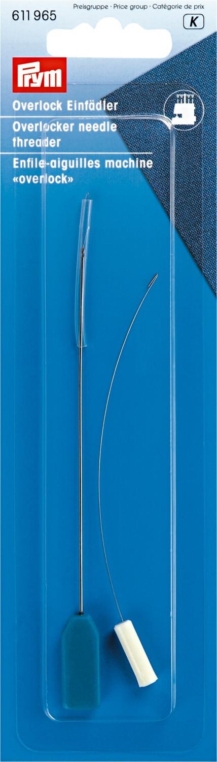 Detta trädningsverktyg från Prym är särskilt utformat för enkel trädning av overlocksymaskiner. Setet innehåller två trädare: en för den övre och nedre griparen. Den fint böjda stålfjädertråden med ett vitt plasthandtag gör det enkelt att säkra tråden och dra den genom griparens öga. Nålträdaren fungerar som en traditionell nålträdare men har ett långt skaft av stålfjädertråd och ett blått plasthandtag för enklare hantering – ett oumbärligt verktyg för overlockanvändare