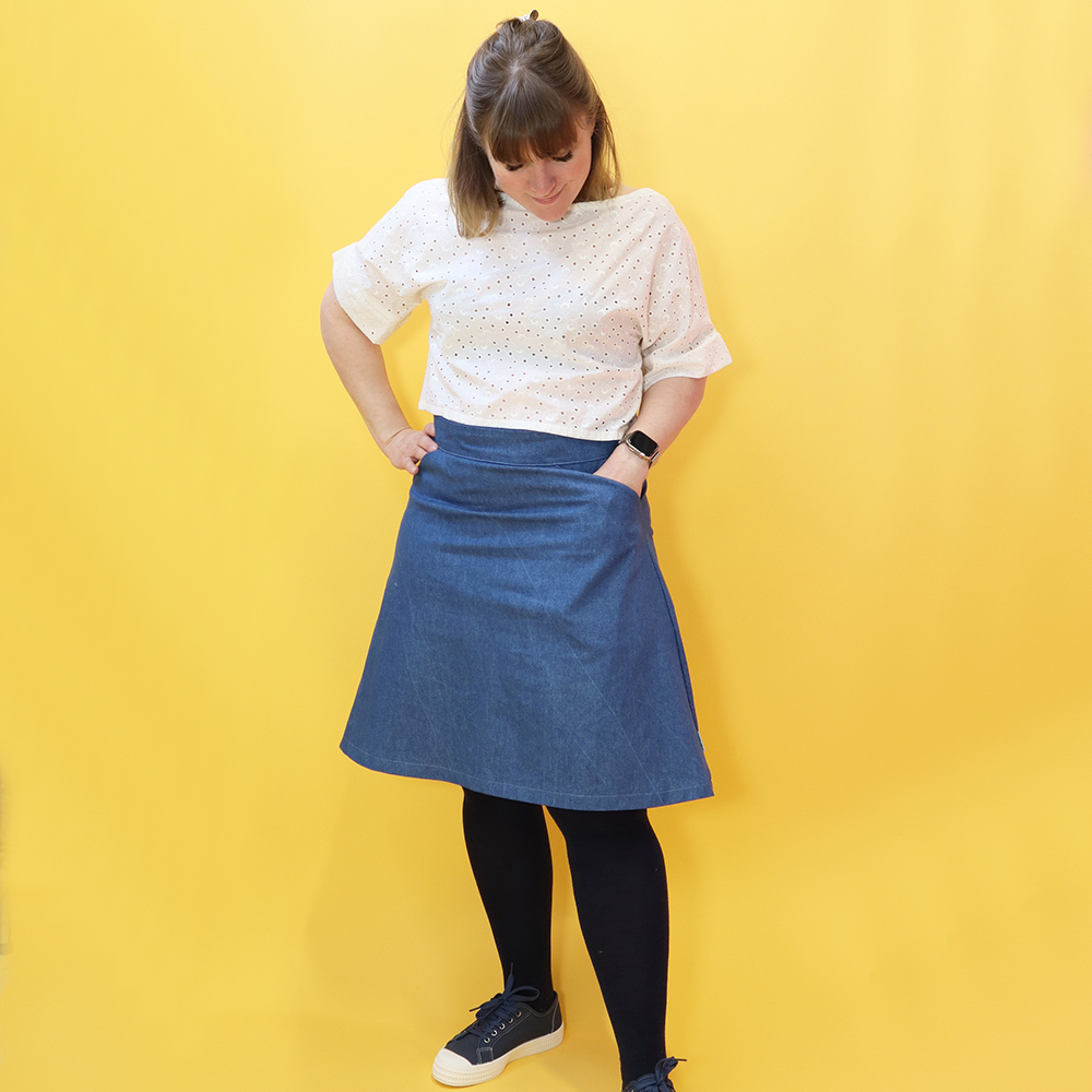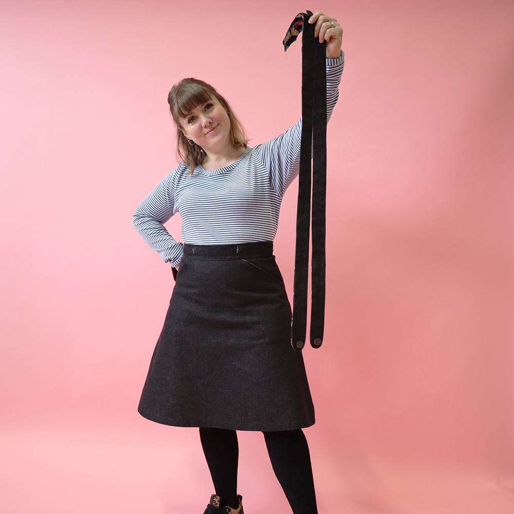 Kjolen sys i stadiga vävda tyger, gärna lite kraftigare material som denim, manchester eller canvas.