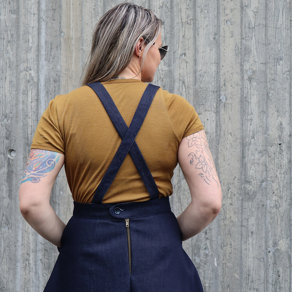 | Varianter | Hängselklänning, kjol med selar, eller enkel kjol |