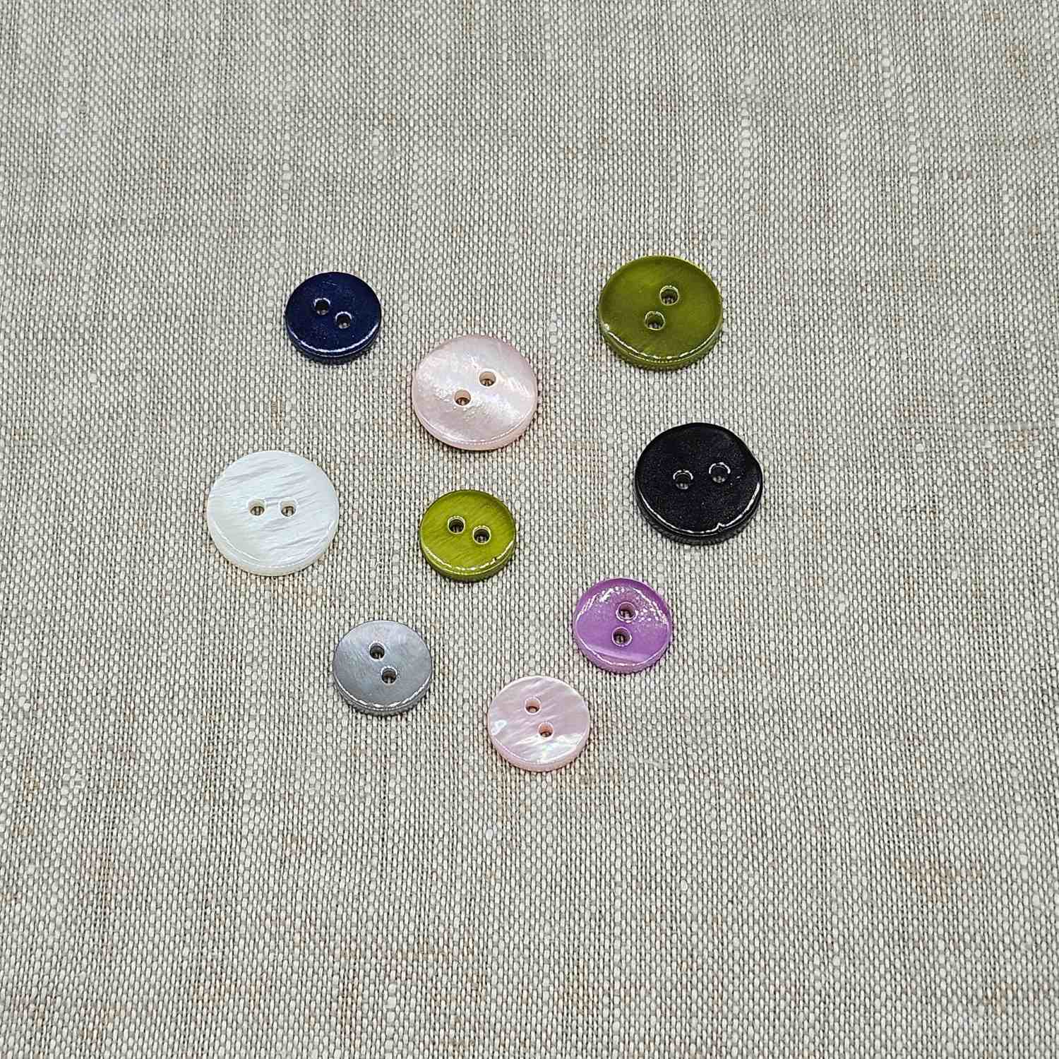 Pärlemorknapp med 2 hål är ett sybehör tillverkat av 100% pärlemor. Denna knapp finns i storlekarna 10 mm och 15 mm, vilket gör den lämplig för olika typer av plagg och projekt.