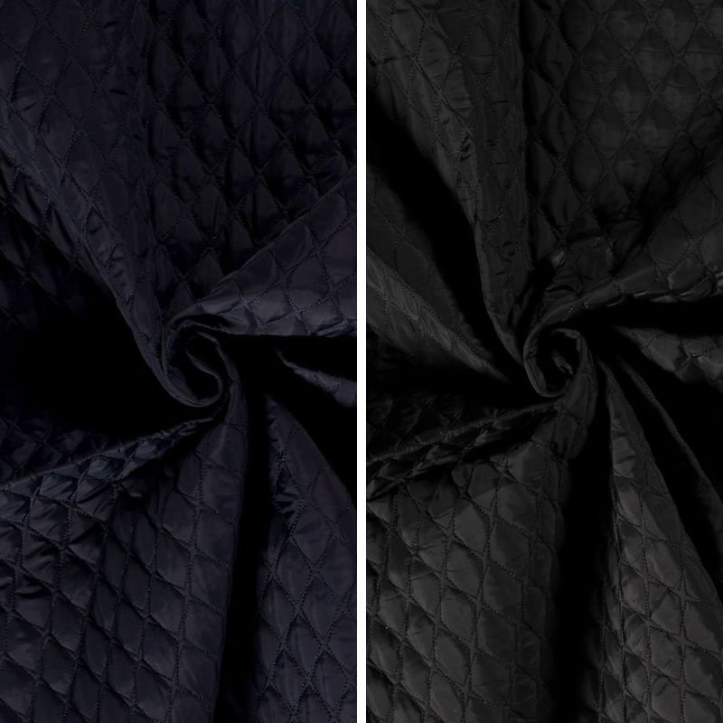 Detta dubbelsidiga quiltade tyg är en mångsidig textil med en rik textur som lämpar sig väl för både huvudmaterial och foder i dina designprojekt. Ytan har en blankhet som är elegant utan att vara överdrivet glansig, vilket ger en lyxig känsla till varje användning. Tyget har ett intressant mönster som kan uppfattas som en blandning av stjärnor och rutor.