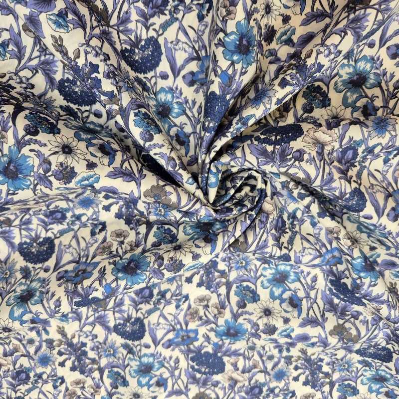 <ul><li>Liberty Tana Lawn, 100% bomull</li><li>Frodigt botaniskt mönster i blå toner</li><li>Silkeslen känsla och fint fall</li></ul>