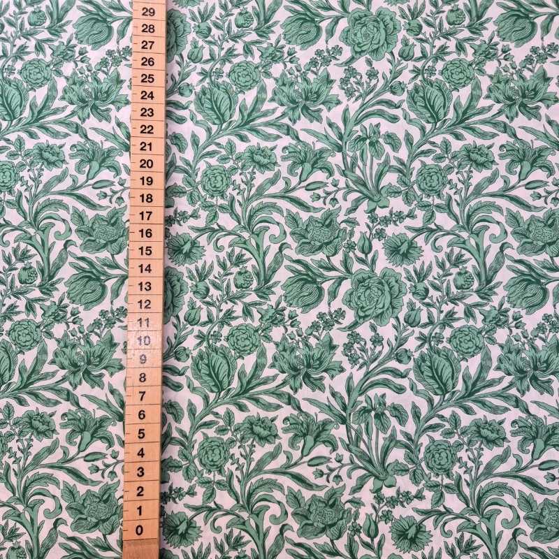 <ul><li>Liberty Tana Lawn, 100% bomull</li><li>Klassiskt gravyrmönster i grönt mot ljus botten</li><li>136 cm bred, 104 g/m²</li></ul>